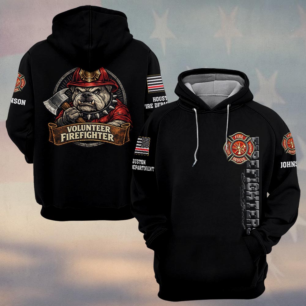 Custom Name & Department Volunteer Firefighter Bulldog v4 #DQH0999 – Hoodie