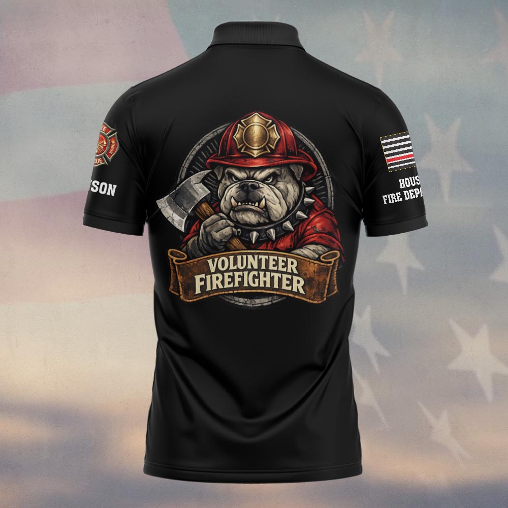 Custom Name & Department Volunteer Firefighter Bulldog v4 #DQH0999 – Polo