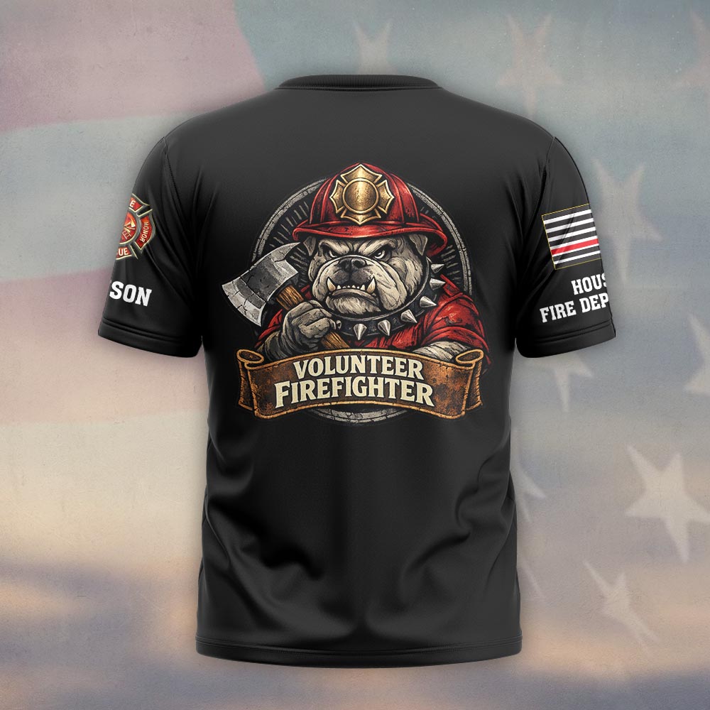 Custom Name & Department Volunteer Firefighter Bulldog v4 #DQH0999 – T-shirt