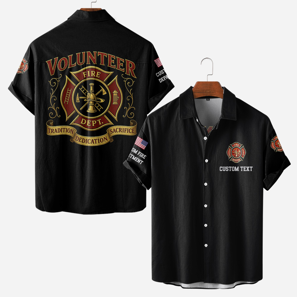 Custom Name & Department Volunteer Firefighter Tradition Dedication Sacrifice #DQH0018 – AOP Short Sleeve Button Shirt
