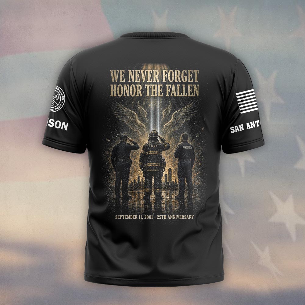 Custom Name & Department We Never Forget Honor The Fallen September 11 25th Anniversary First Responders #DQH0663 – T-shirt