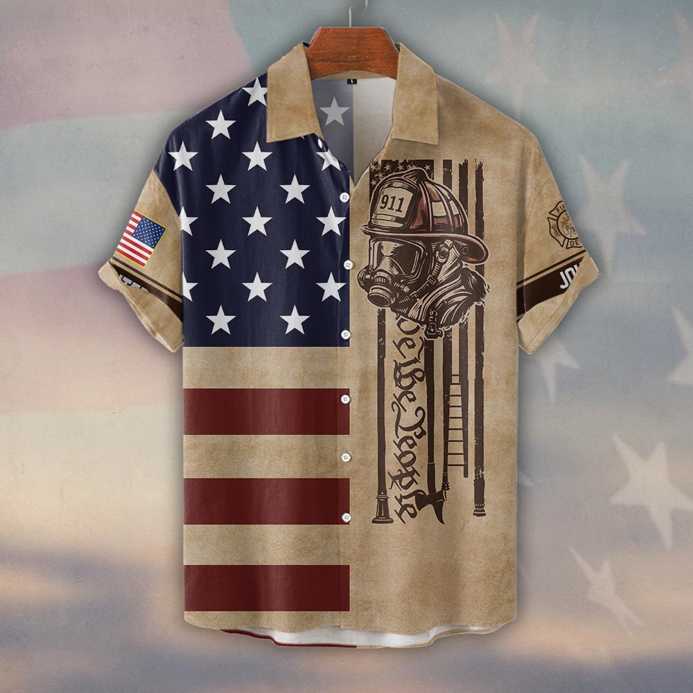 Custom Name & Department We The People America Firefighter #DQH0498 – Short Sleeve Button Shirt
