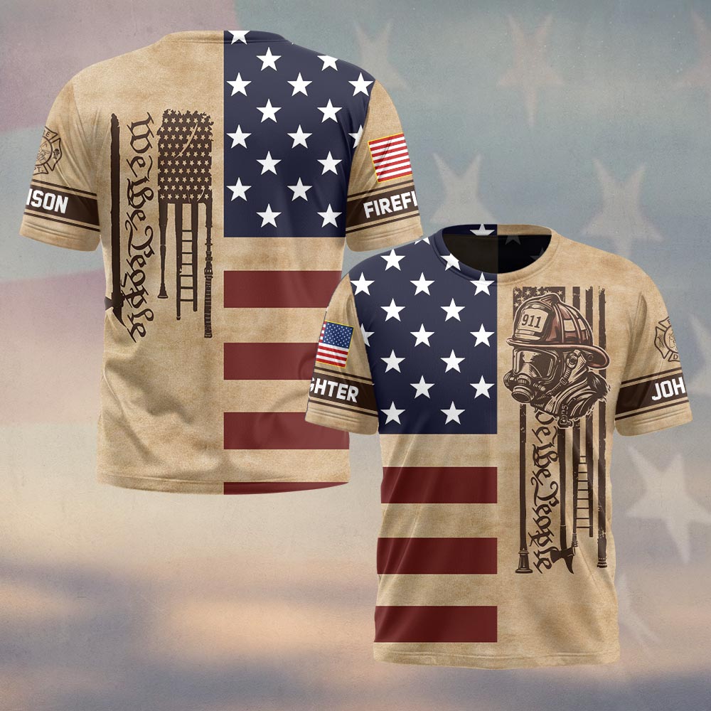 Custom Name & Department We The People America Firefighter #DQH0498 – T-shirt