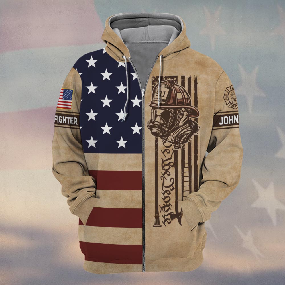 Custom Name & Department We The People America Firefighter #DQH0498 – Zip Hoodie