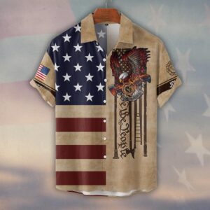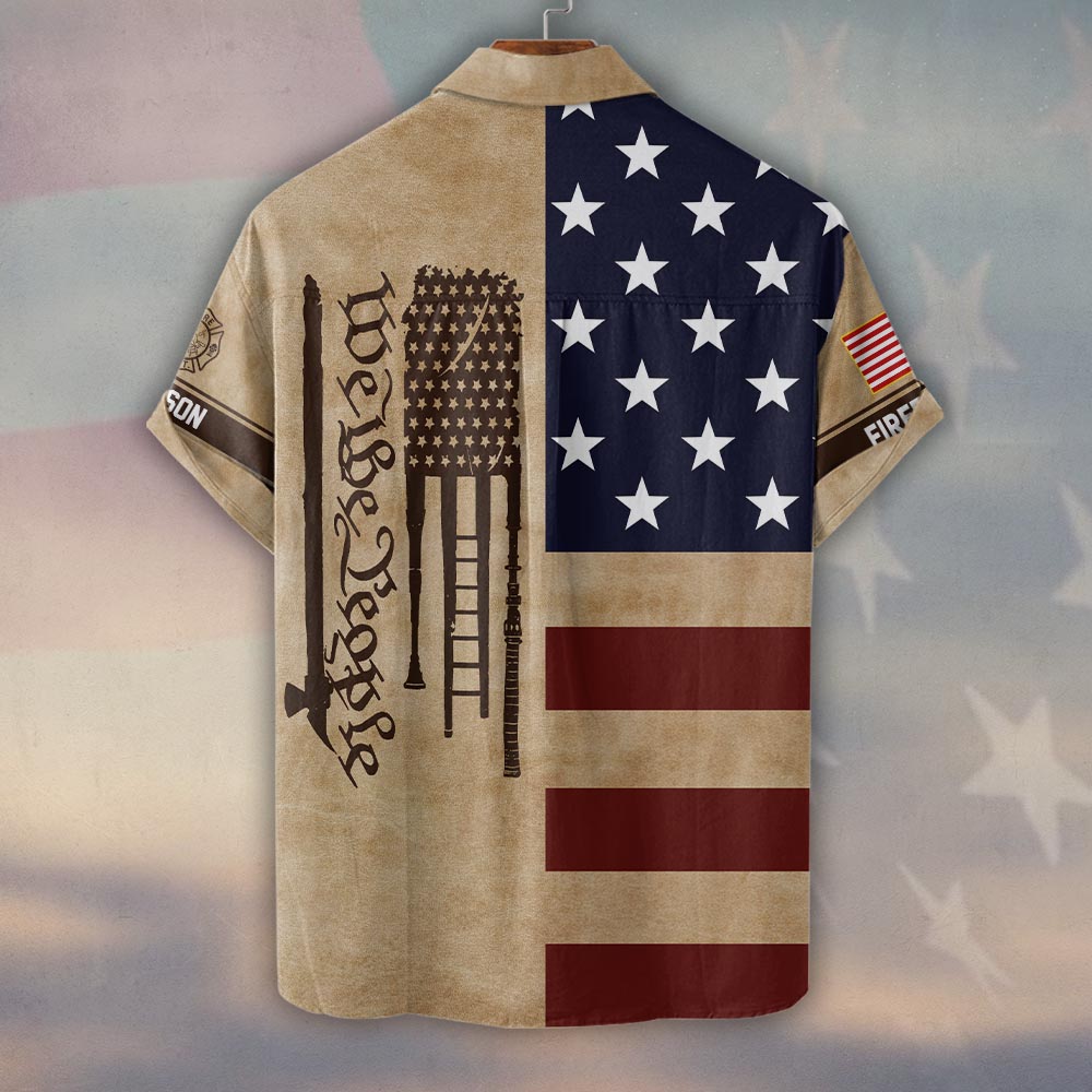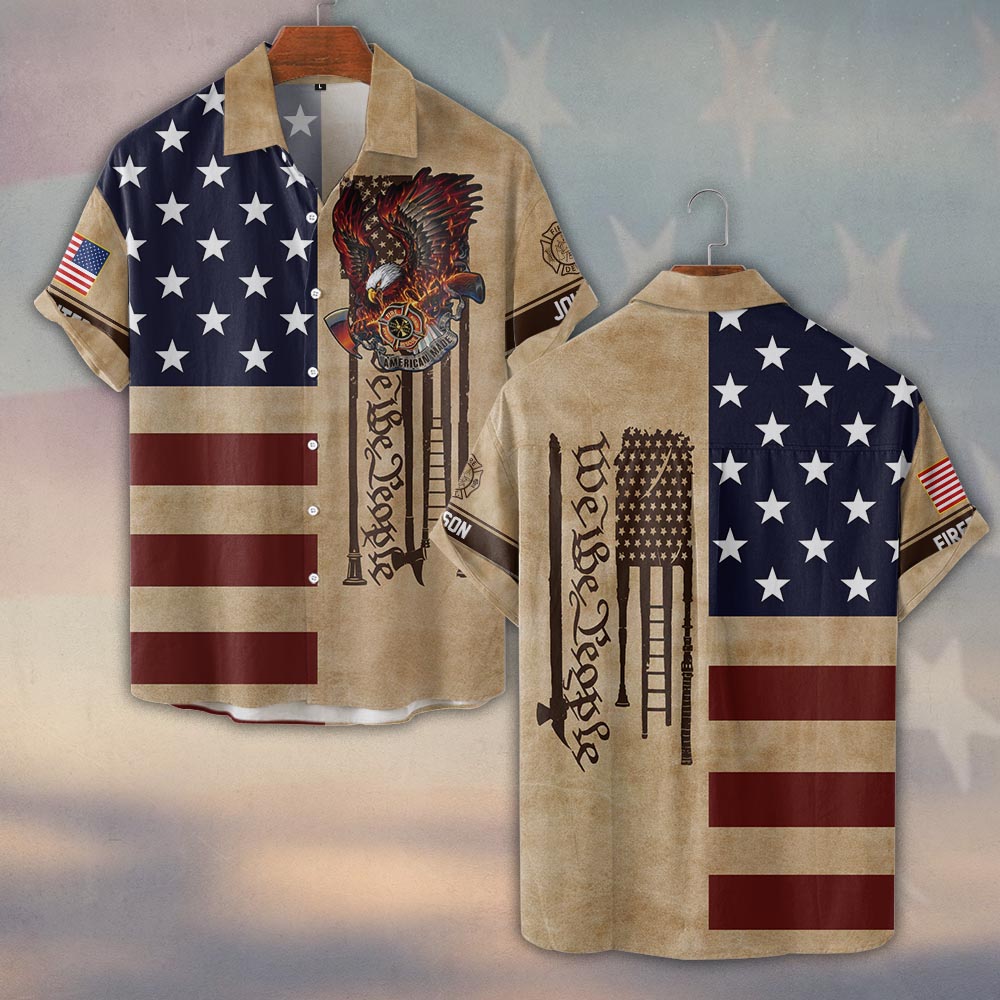 Custom Name & Department We The People American Made Eagle Firefighter #DQH0500 – Short Sleeve Button Shirt