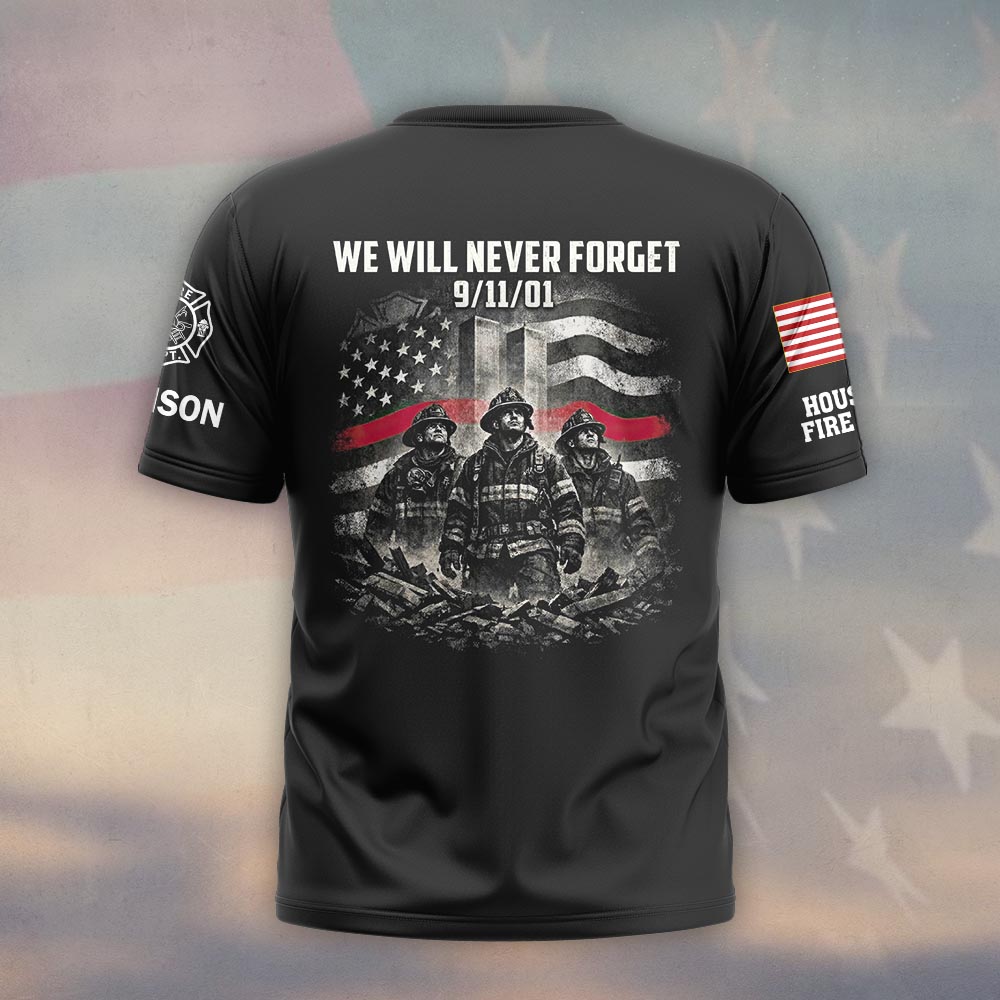 Custom Name & Department We Will Never Forget Firefighter Stand Tall 911 #DQH0596 – T-shirt