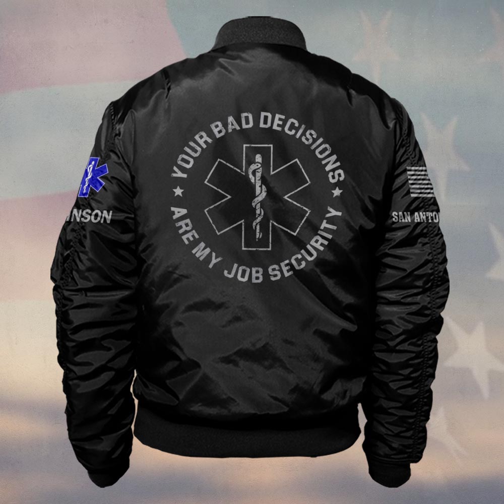 Custom Name & Department Your Bad Decisions Are My Job Security First Responders #DQH0448 – Bomber Jacket