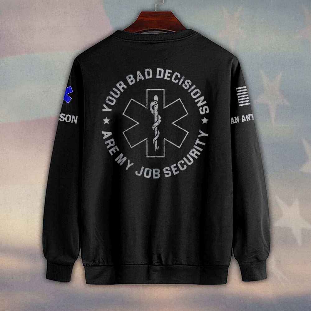 Custom Name & Department Your Bad Decisions Are My Job Security First Responders #DQH0448 – Sweatshirt