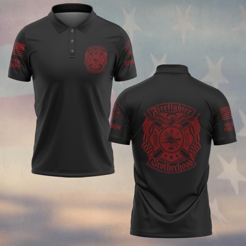Custom Name & Departmentg Firefighter Brotherhood – Blood & Honor #DQH0516 – Polo
