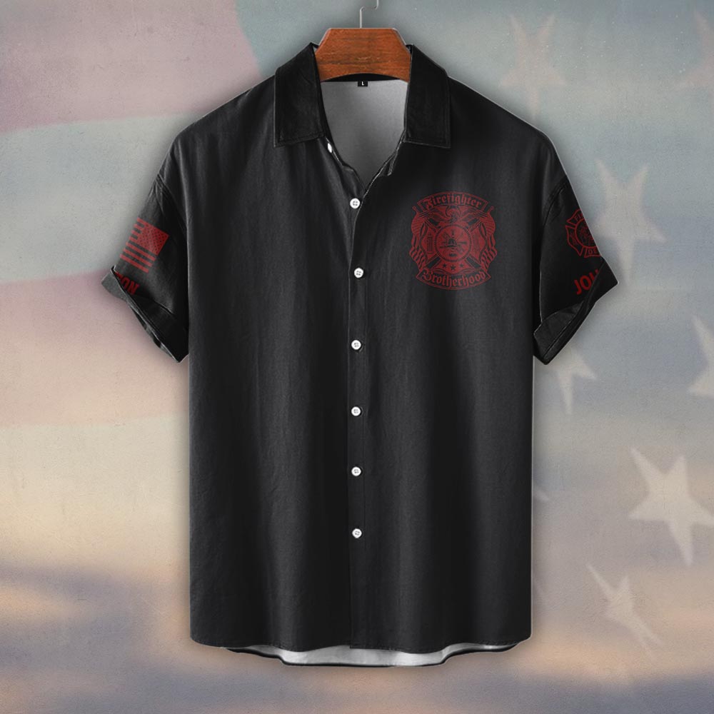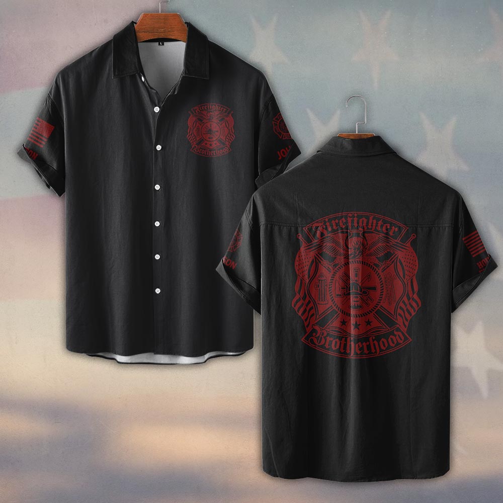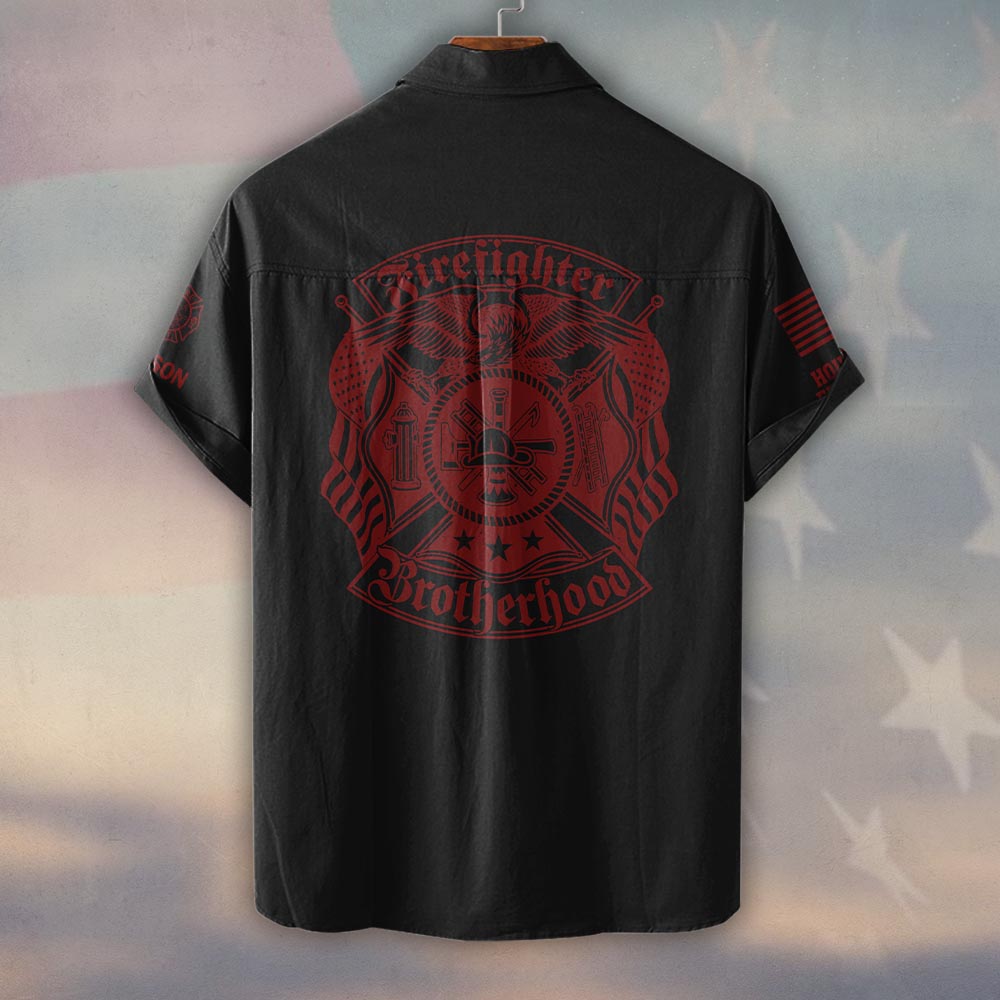 Custom Name & Departmentg Firefighter Brotherhood – Blood & Honor #DQH0516 – Short Sleeve Button Shirt