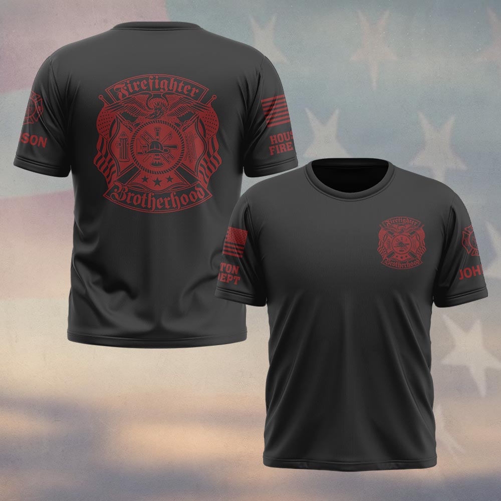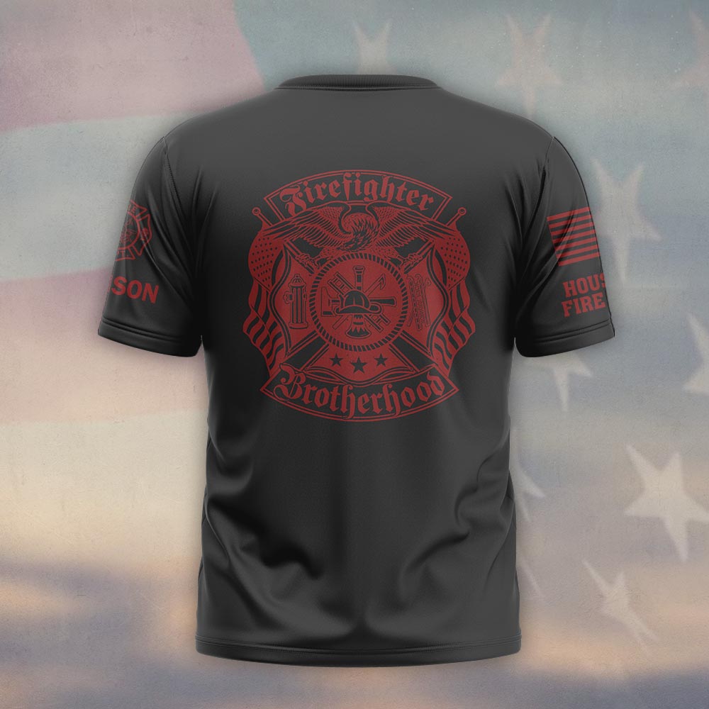 Custom Name & Departmentg Firefighter Brotherhood – Blood & Honor #DQH0516 – T-shirt