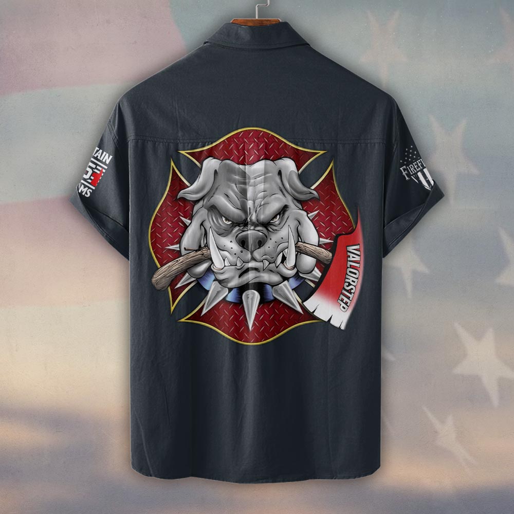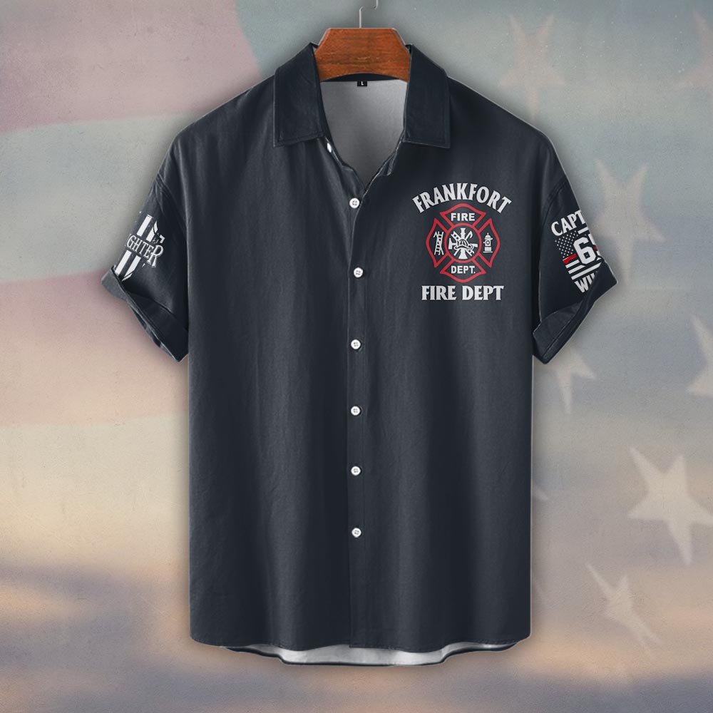 Custom Name, Dept, Rank & Number Maltese Cross Bulldog Pride #DQH0142 – Short Sleeve Button Shirt