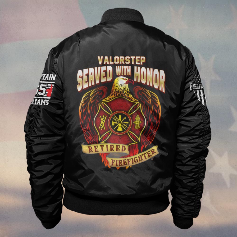 Custom Name, Dept, Rank & Number Served With Honor #DQH0141 – Bomber Jacket