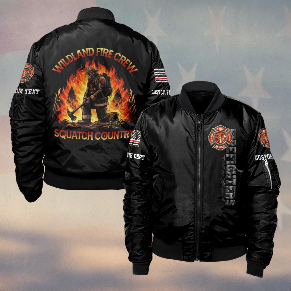 Custom Name & Dept Wildland Fire Crew Squatch Country #DQH0176 – Bomber Jacket