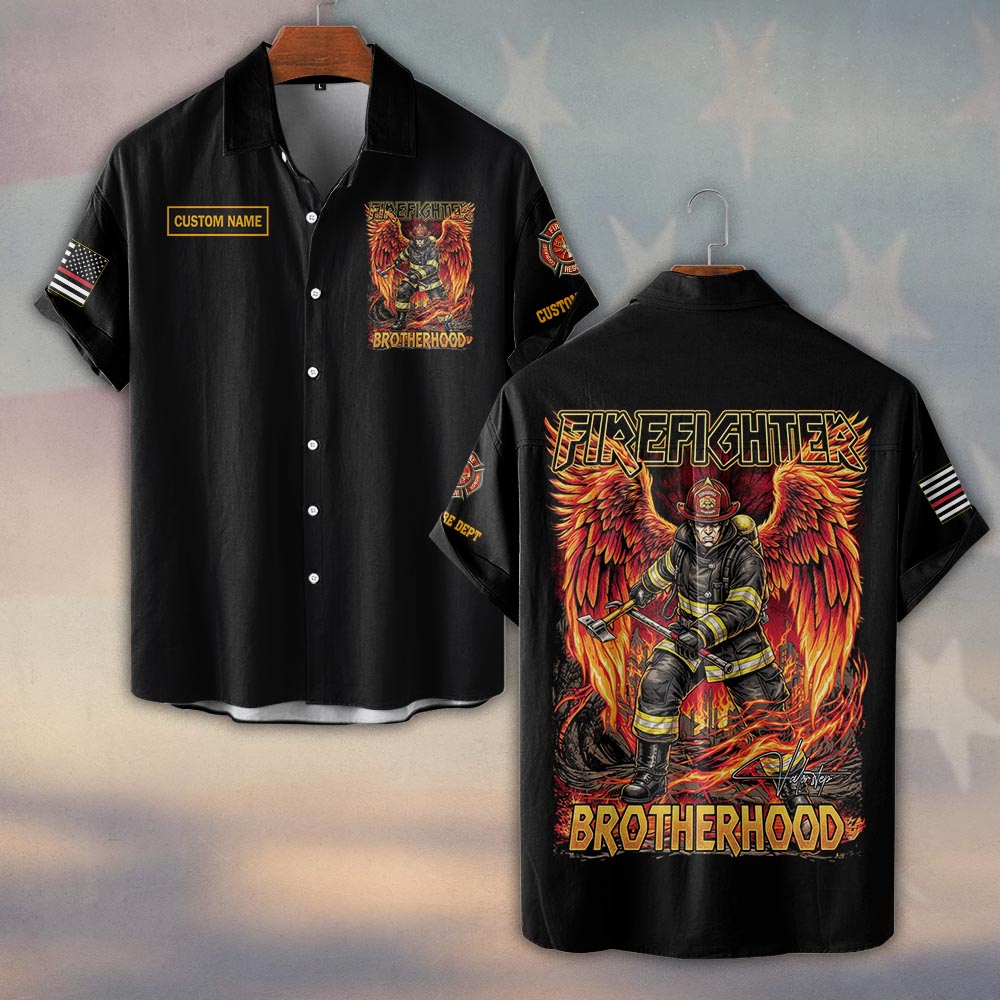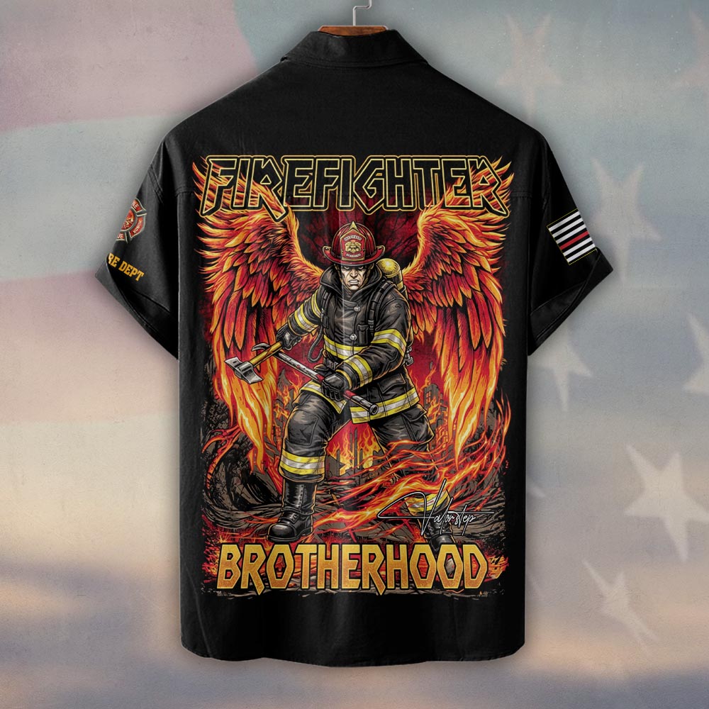 Custom Name & Dept Wings of Fire Brotherhood Firefighter #DQH0182 – Short Sleeve Button Shirt