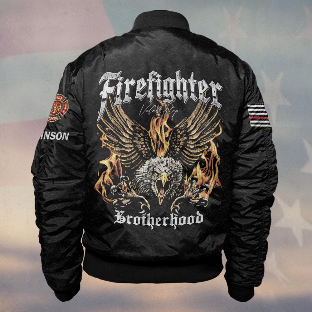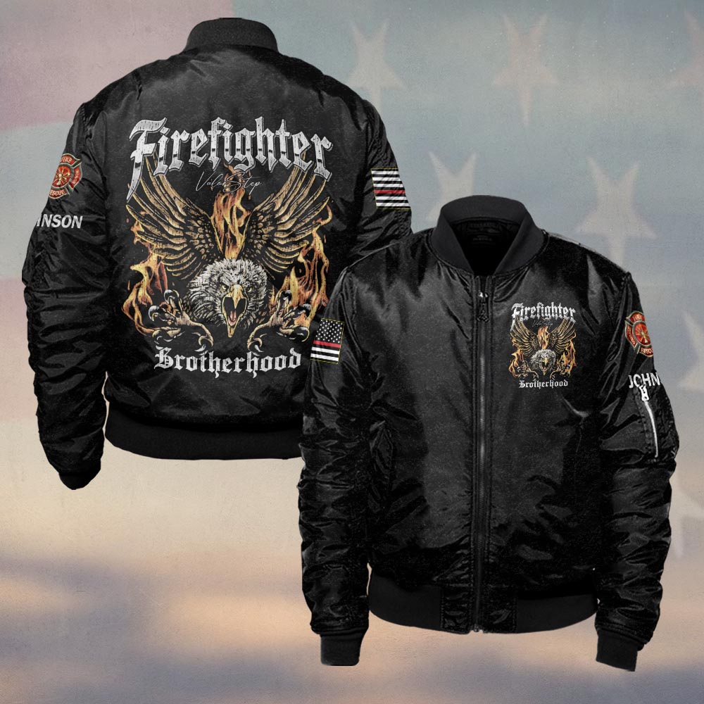 Custom Name Eagle of Fire Firefighter Brotherhood #DQH0193 – Bomber Jacket