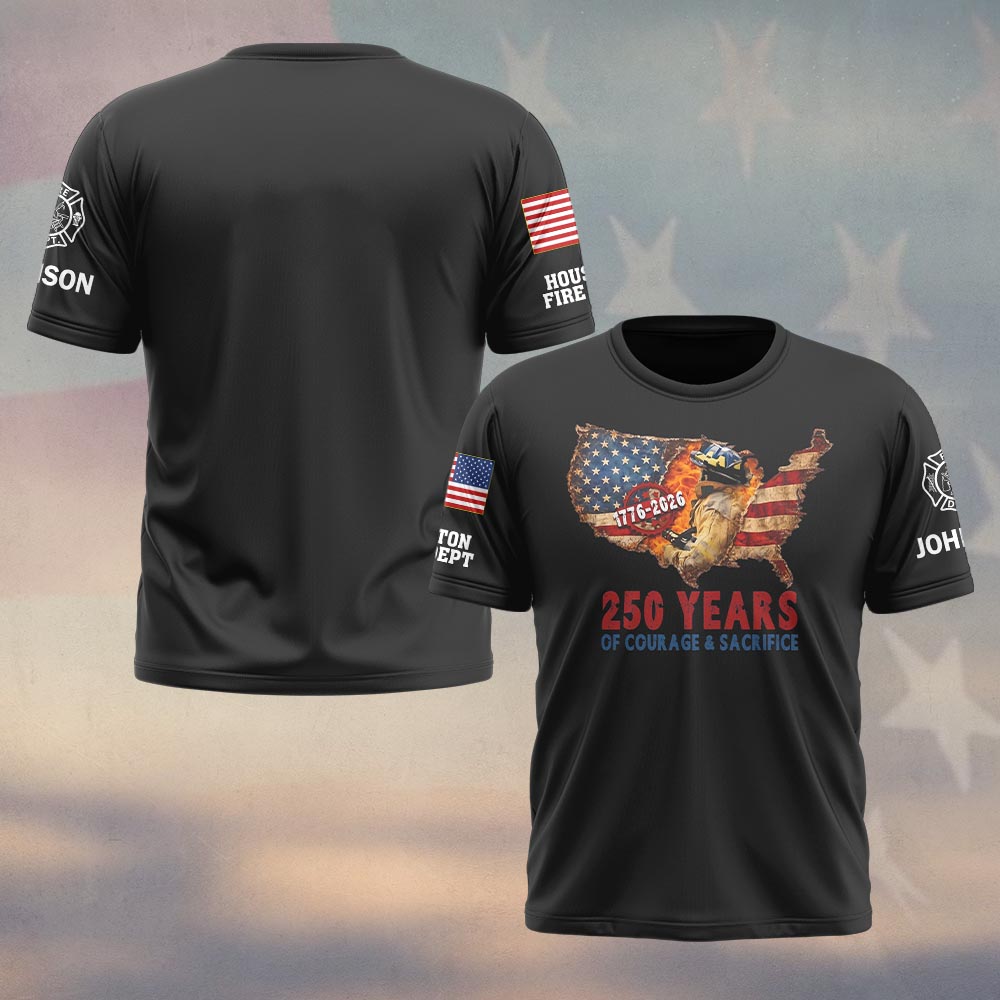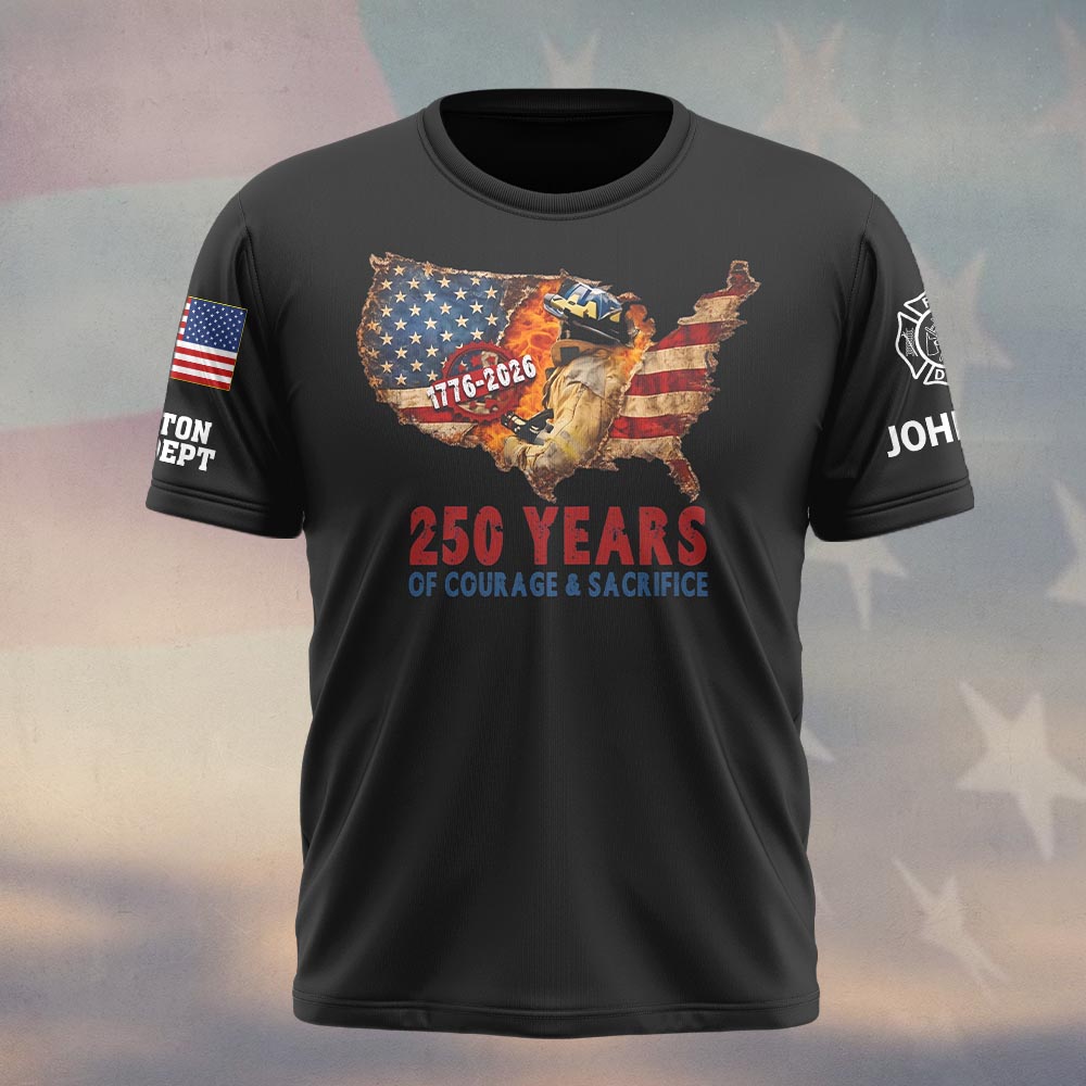 Custom Name & Fire Department 250 Years Of Courage & Sacrifice #DQH0435 – T-shirt