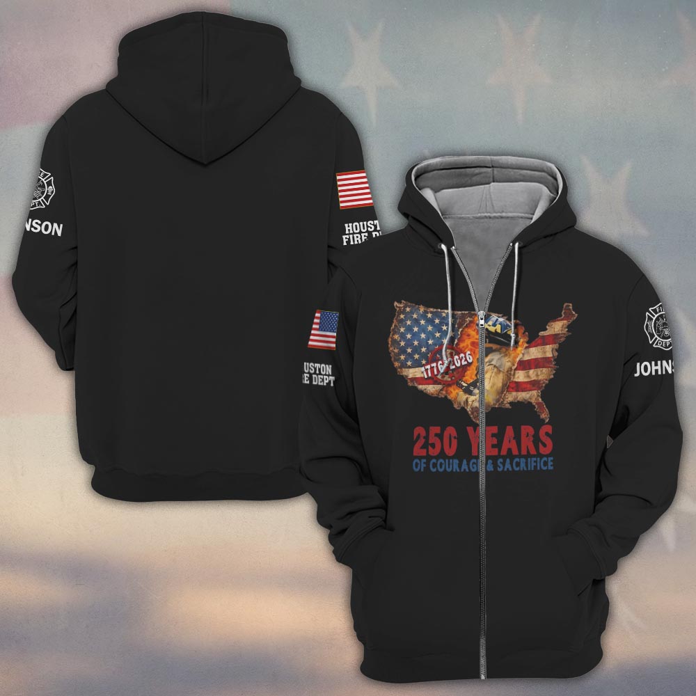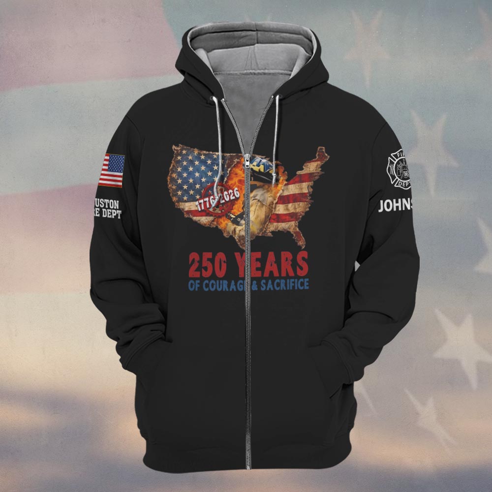 Custom Name & Fire Department 250 Years Of Courage & Sacrifice #DQH0435 – Zip Hoodie
