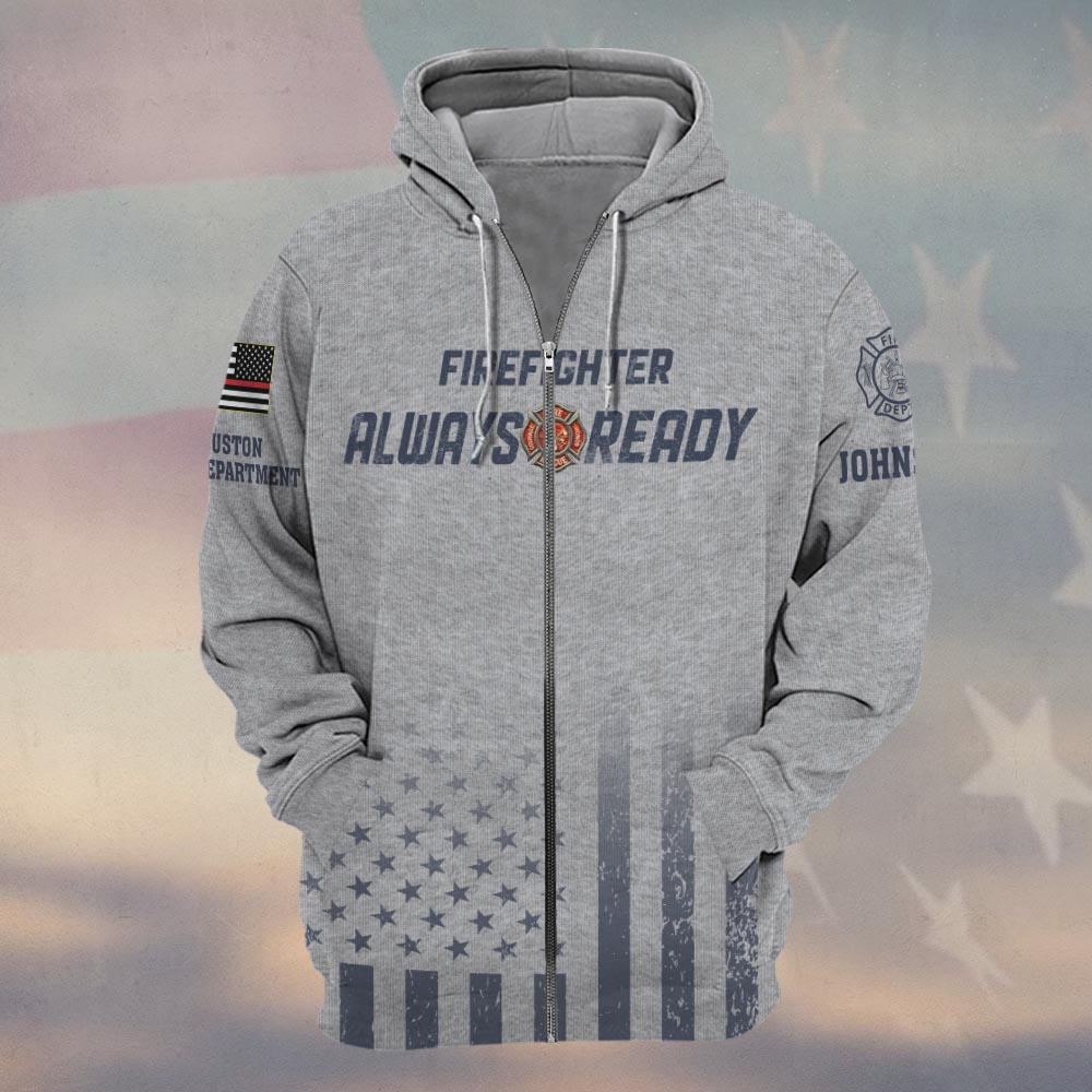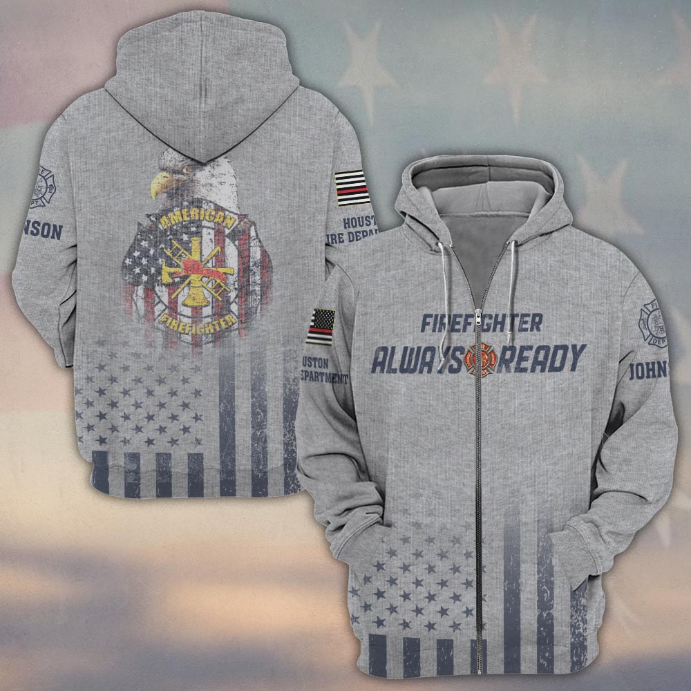 Custom Name & Fire Department American Firefighter Always Ready Eagle Edition #DQH0352 – Zip Hoodie