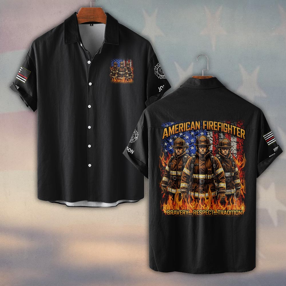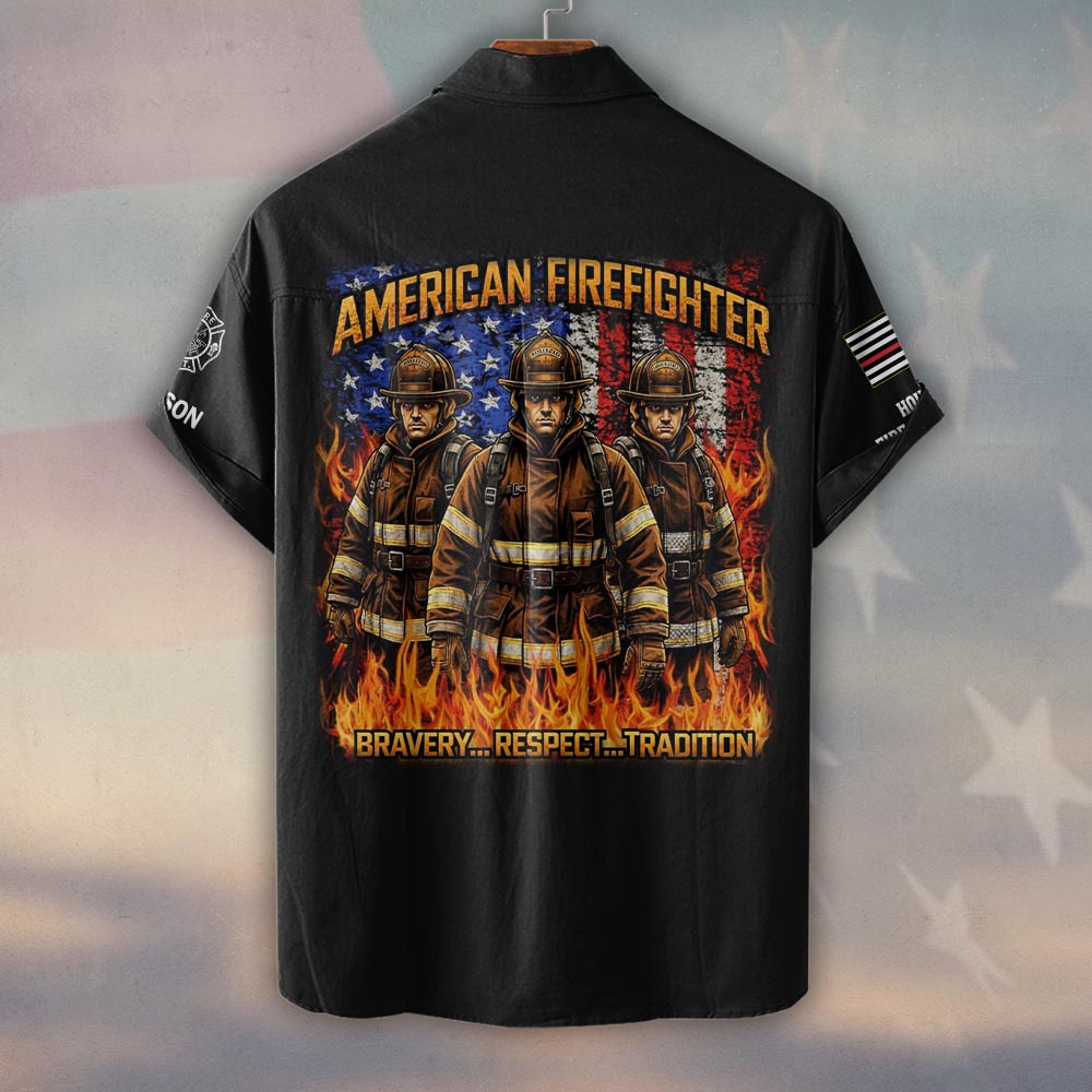 Custom Name & Fire Department American Firefighter Brotherhood #DQH0385 – Short Sleeve Button Shirt