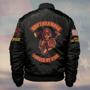 Custom Name & Fire Department Brotherhood Forged By Fire Firefighter #DQH0374 – Bomber Jacket