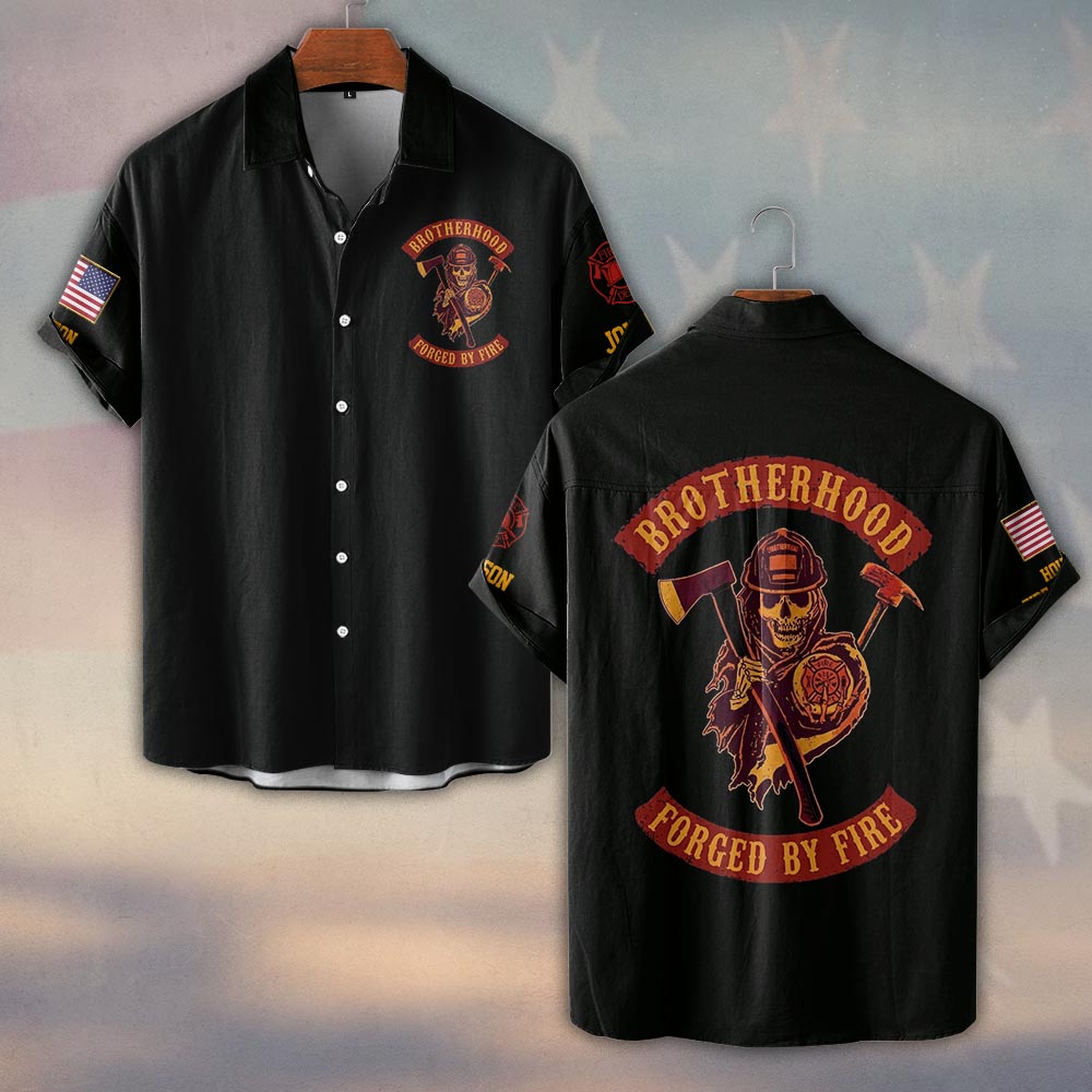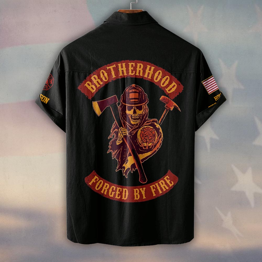 Custom Name & Fire Department Brotherhood Forged By Fire Firefighter #DQH0374 – Short Sleeve Button Shirt