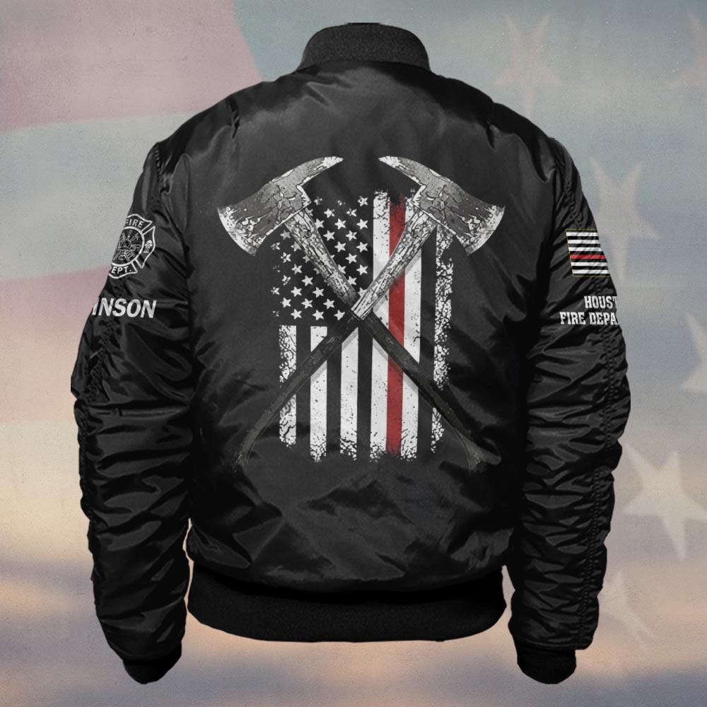 Custom Name & Fire Department Crossed Axes – Earned, Not Given #DQH0387 – Bomber Jacket