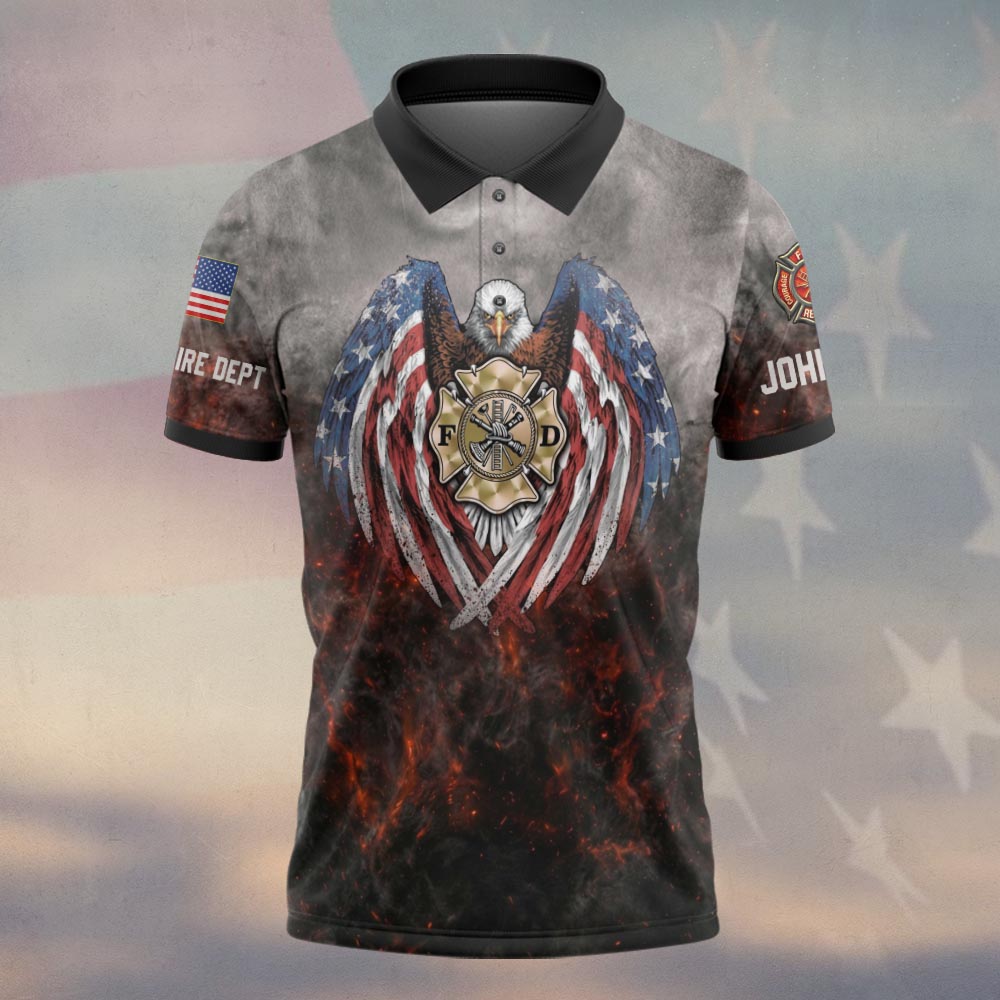 Custom Name & Fire Department Eagle of Fire Valor Firefighter #DQH0624 – Polo
