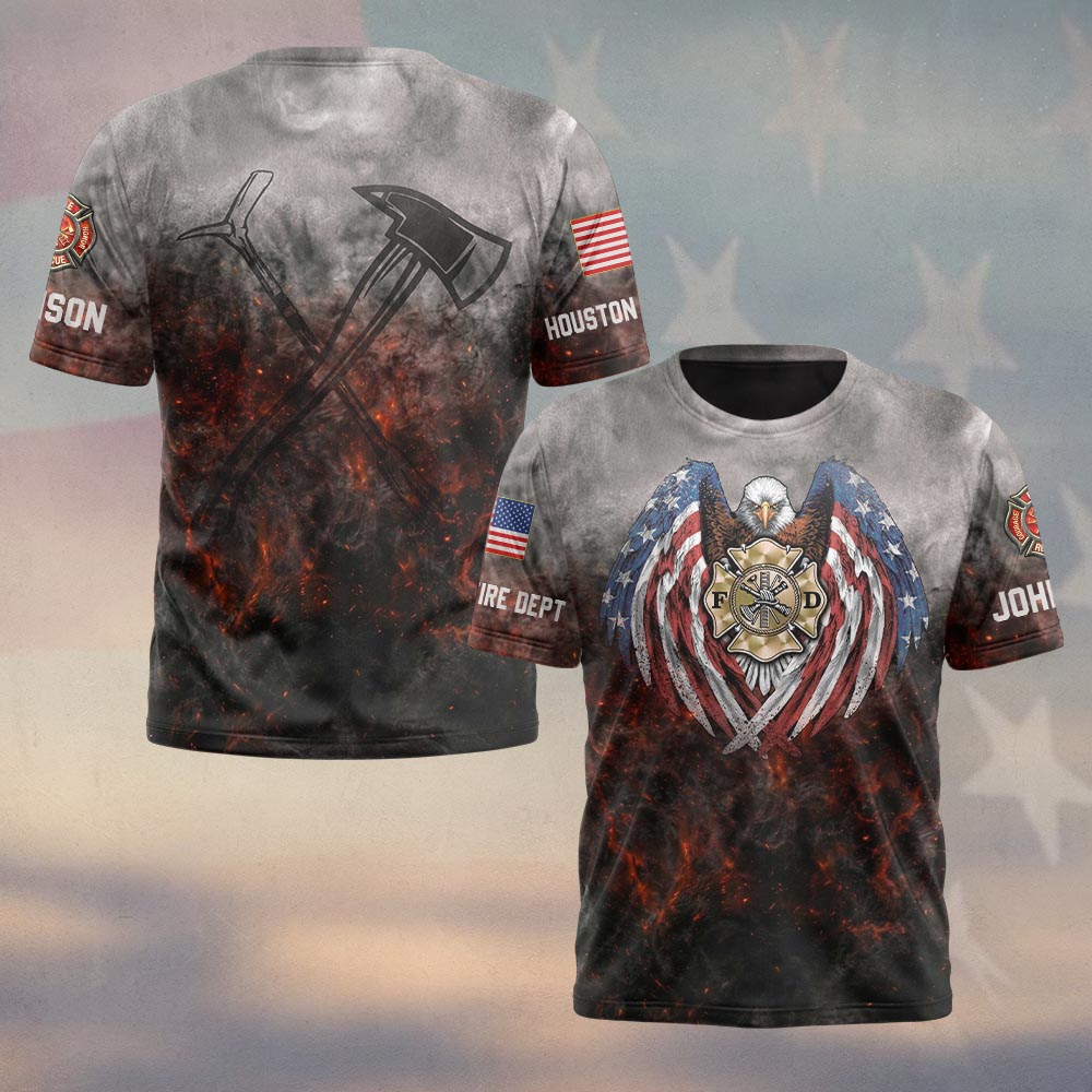 Custom Name & Fire Department Eagle of Fire Valor Firefighter #DQH0624 – T-shirt