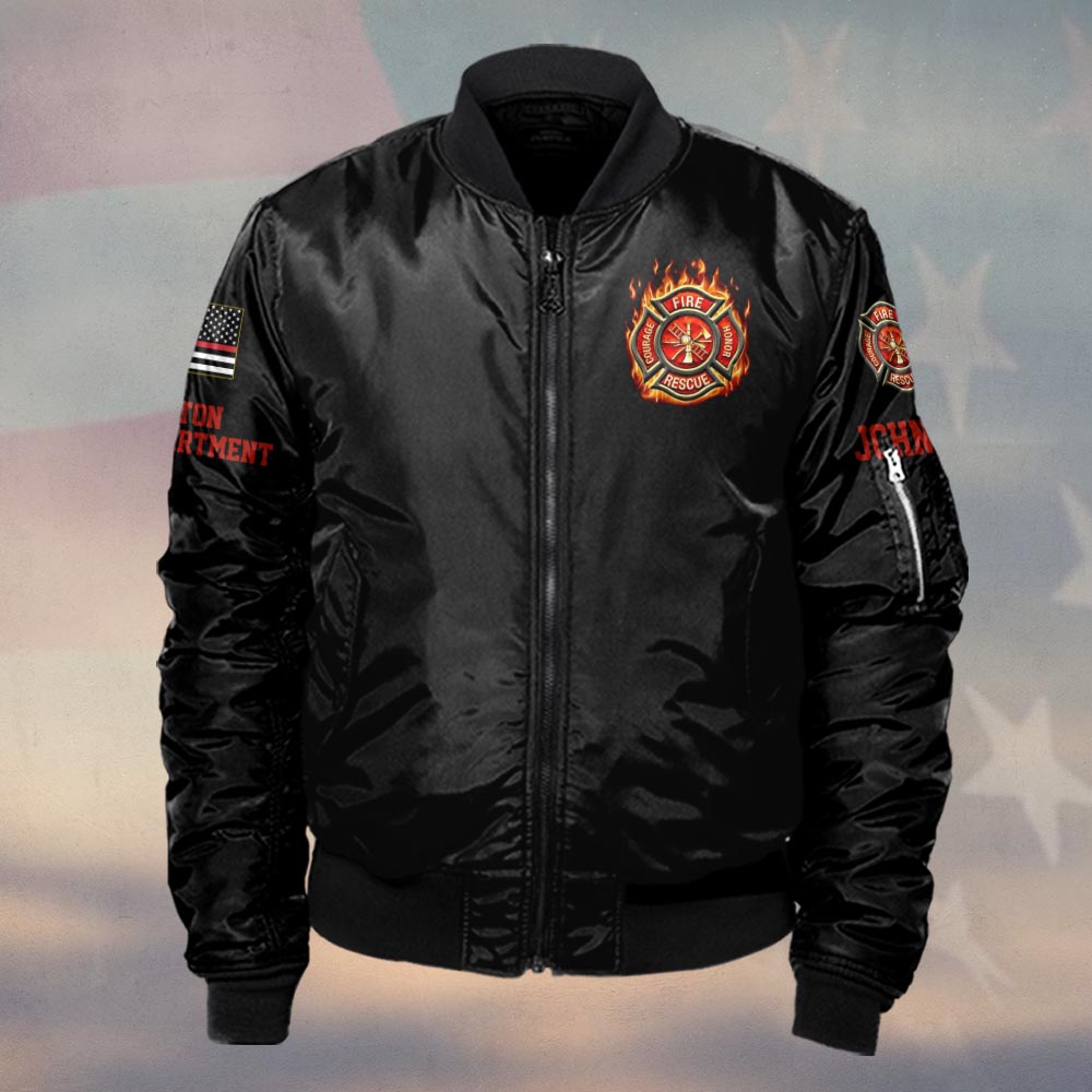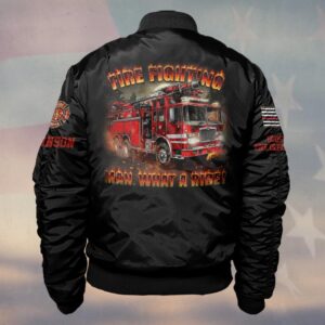 Custom Name & Fire Department Firefighting Man What A Ride #DQH0373 – Bomber Jacket