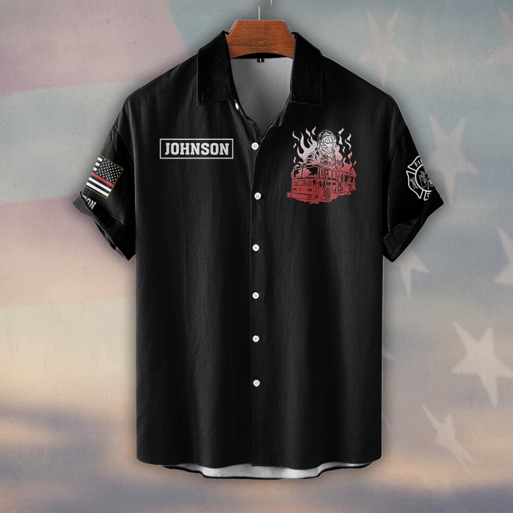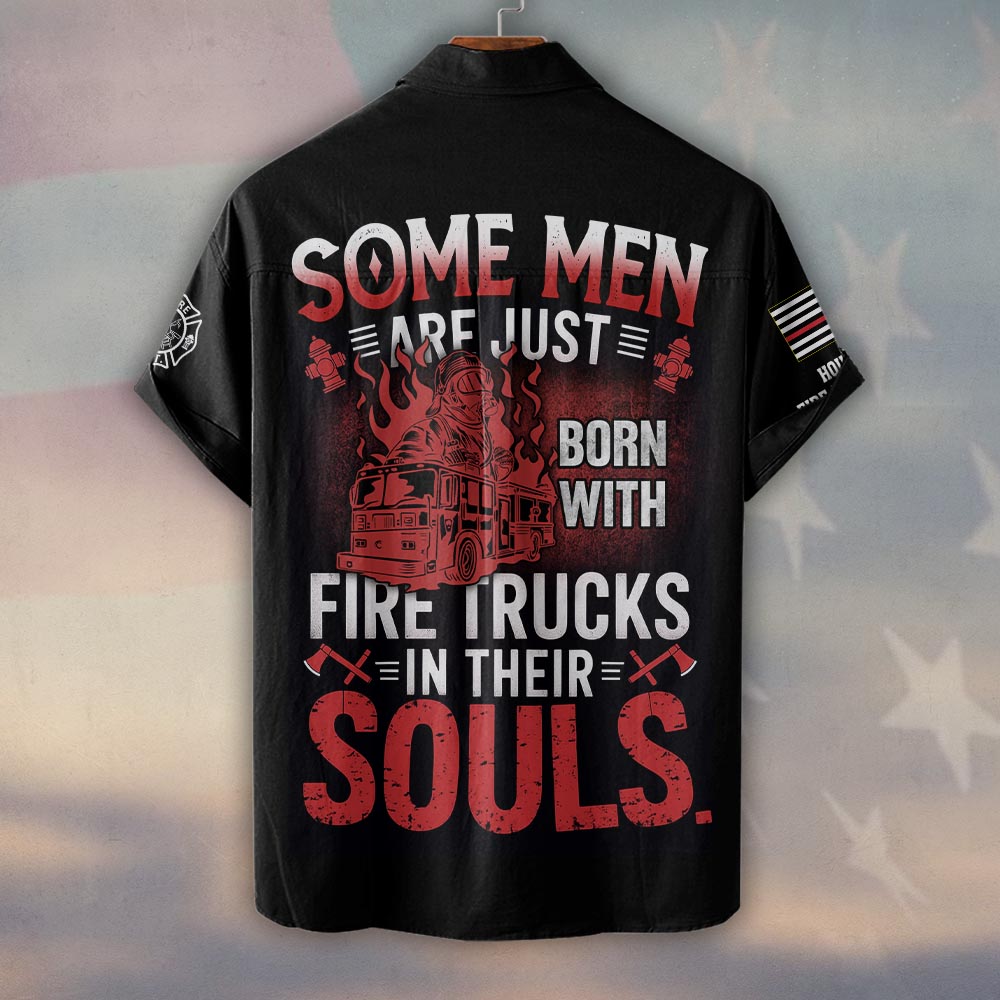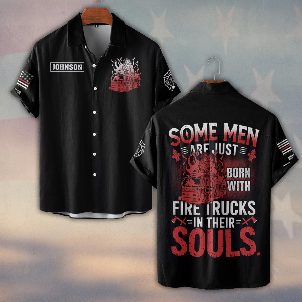 Custom Name & Fire Department Firetrucks In Their Souls #DQH0262 – Short Sleeve Button Shirt