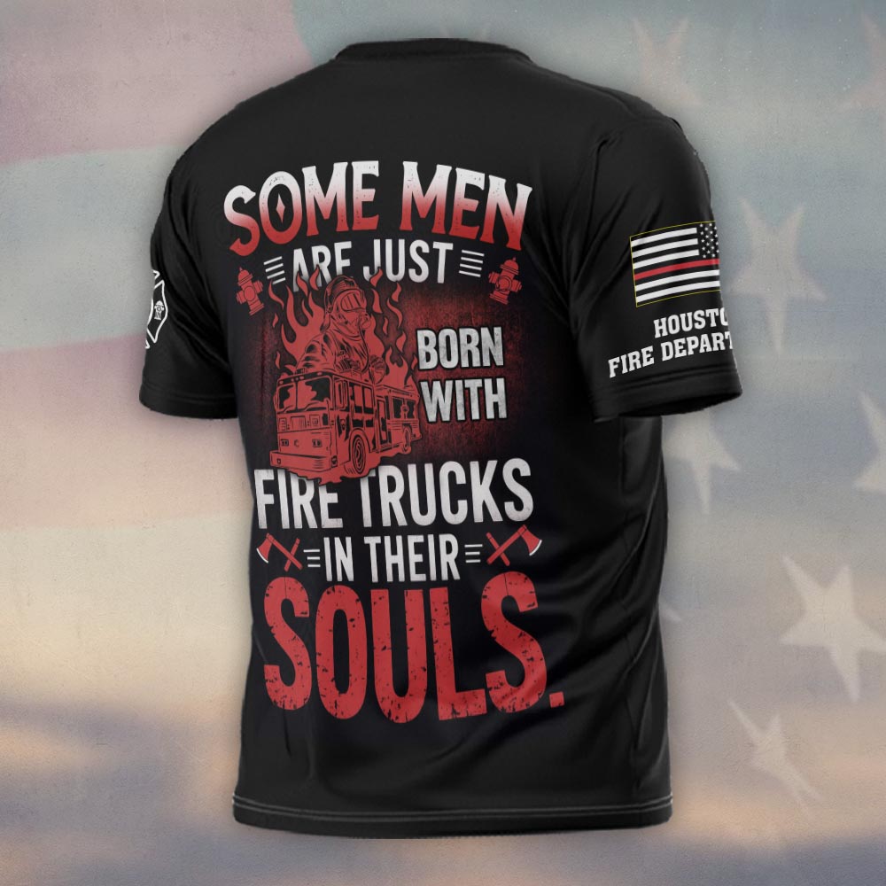 Custom Name & Fire Department Firetrucks In Their Souls #DQH0262 – T-shirt