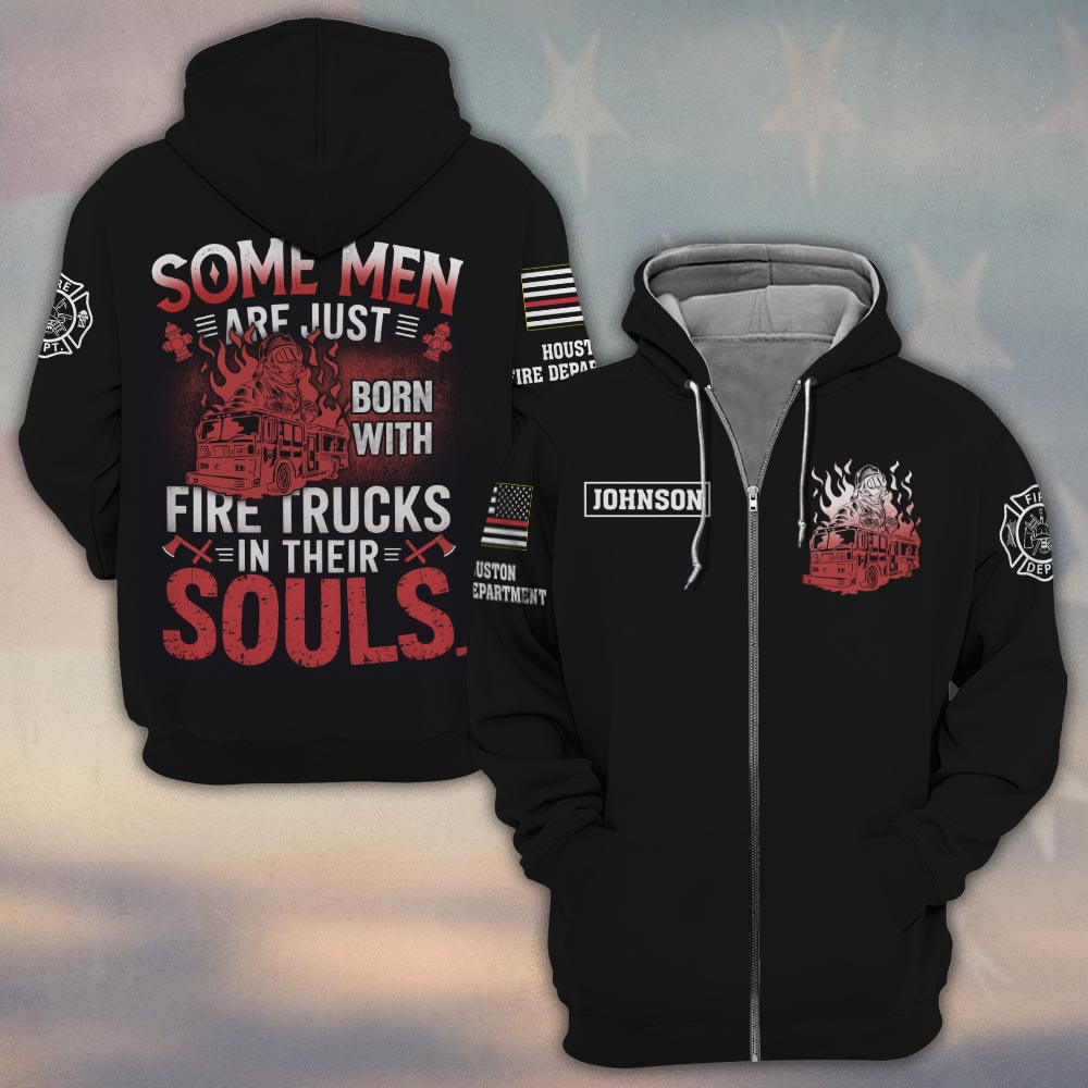 Custom Name & Fire Department Firetrucks In Their Souls #DQH0262 – Zip Hoodie