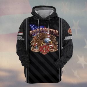 Custom Name & Fire Department First In Last Out Eagle Firefighter #DQH0356 – Hoodie