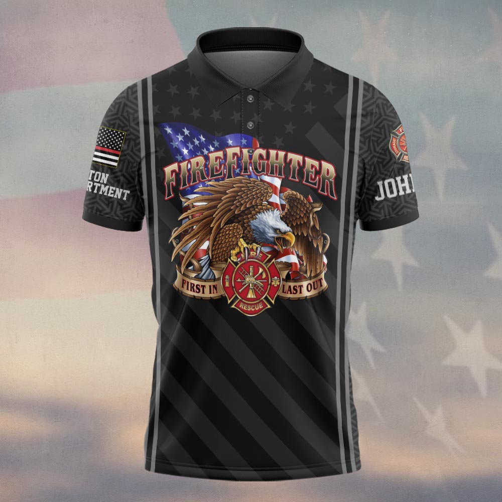 Custom Name & Fire Department First In Last Out Eagle Firefighter #DQH0356 – Polo