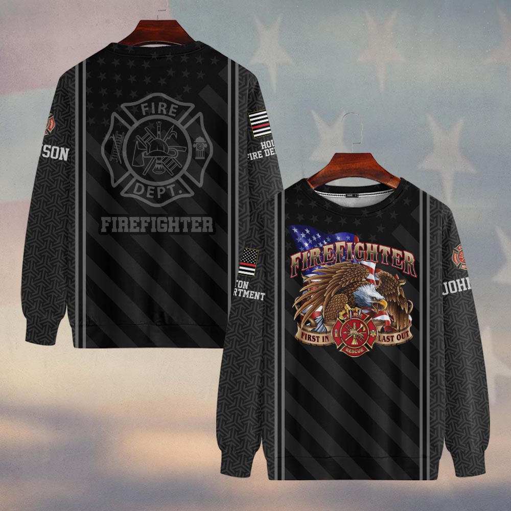 Custom Name & Fire Department First In Last Out Eagle Firefighter #DQH0356 – Sweatshirt