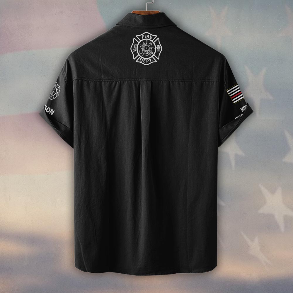 Be the first to review “Custom Name & Fire Department Forged By Fire Built By The Job #DQH0389 – Short Sleeve Button Shirt”