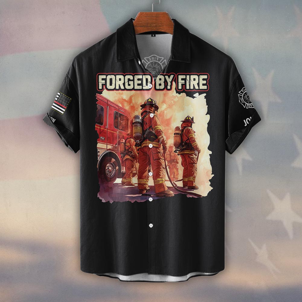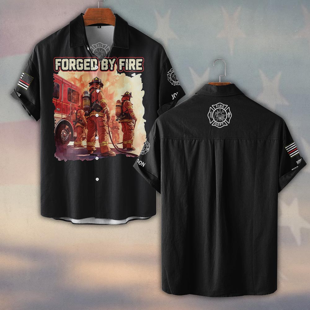 Custom Name & Fire Department Forged By Fire Built By The Job #DQH0389 – Short Sleeve Button Shirt