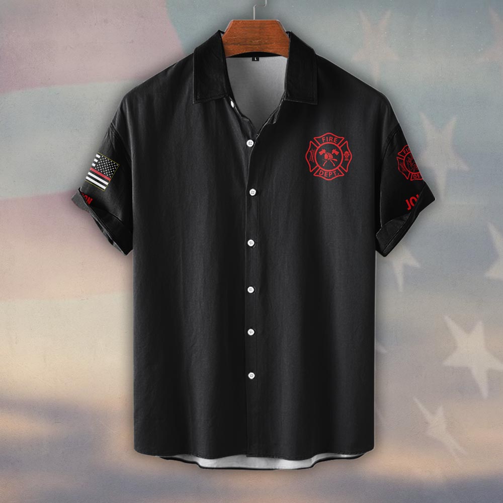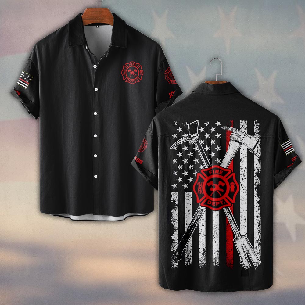 Custom Name & Fire Department Halligan And Axe #DQH0388 – Short Sleeve Button Shirt