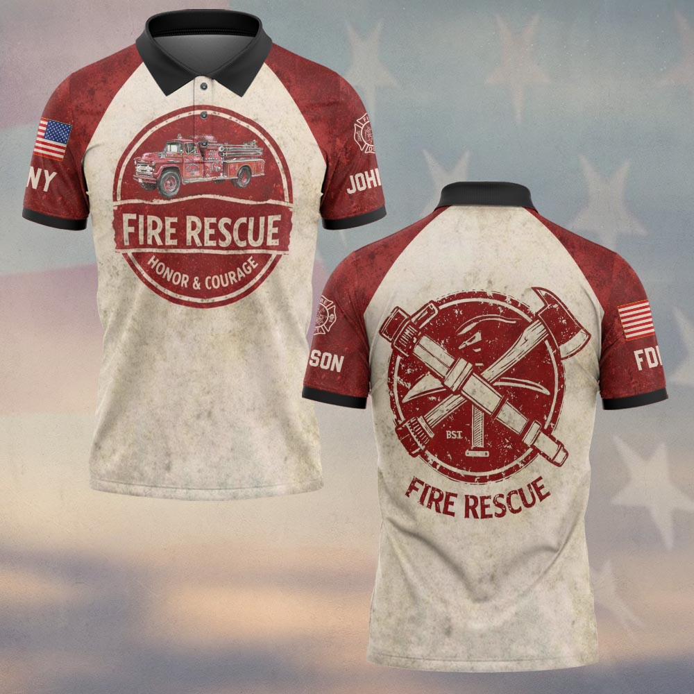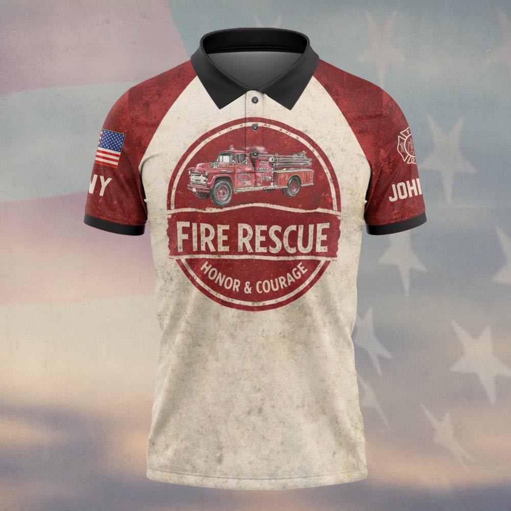 Custom Name & Fire Department Honor & Courage Vintage Firefighter #DQH0626 – Polo