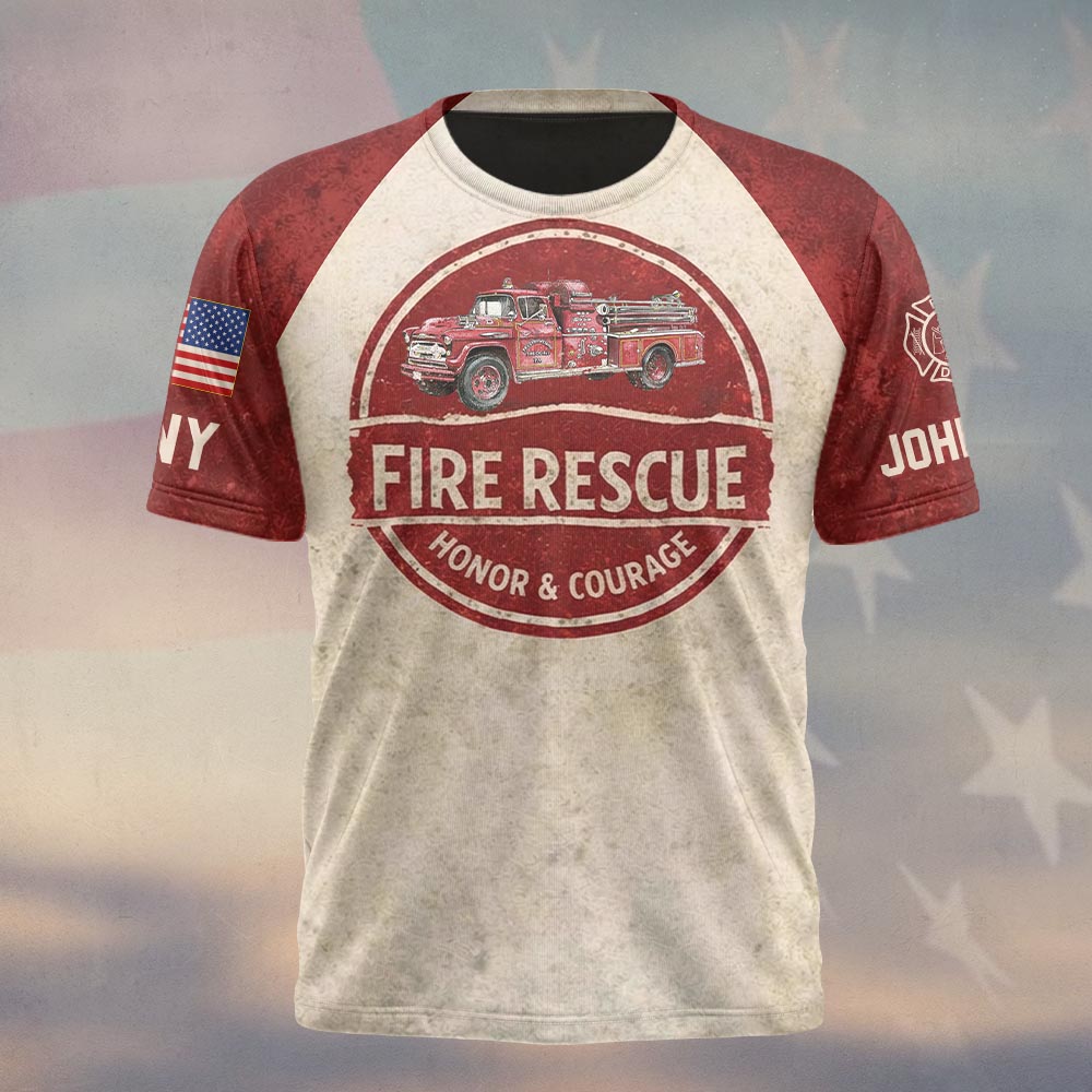 Custom Name & Fire Department Honor & Courage Vintage Firefighter #DQH0626 – T-shirt