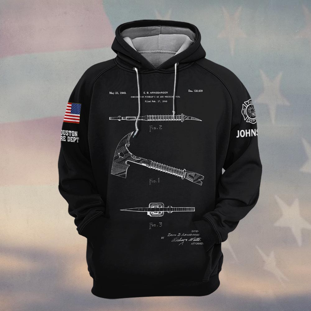 Custom Name & Fire Department Hook & Axe Blueprint Firefighter #DQH0422 – Hoodie
