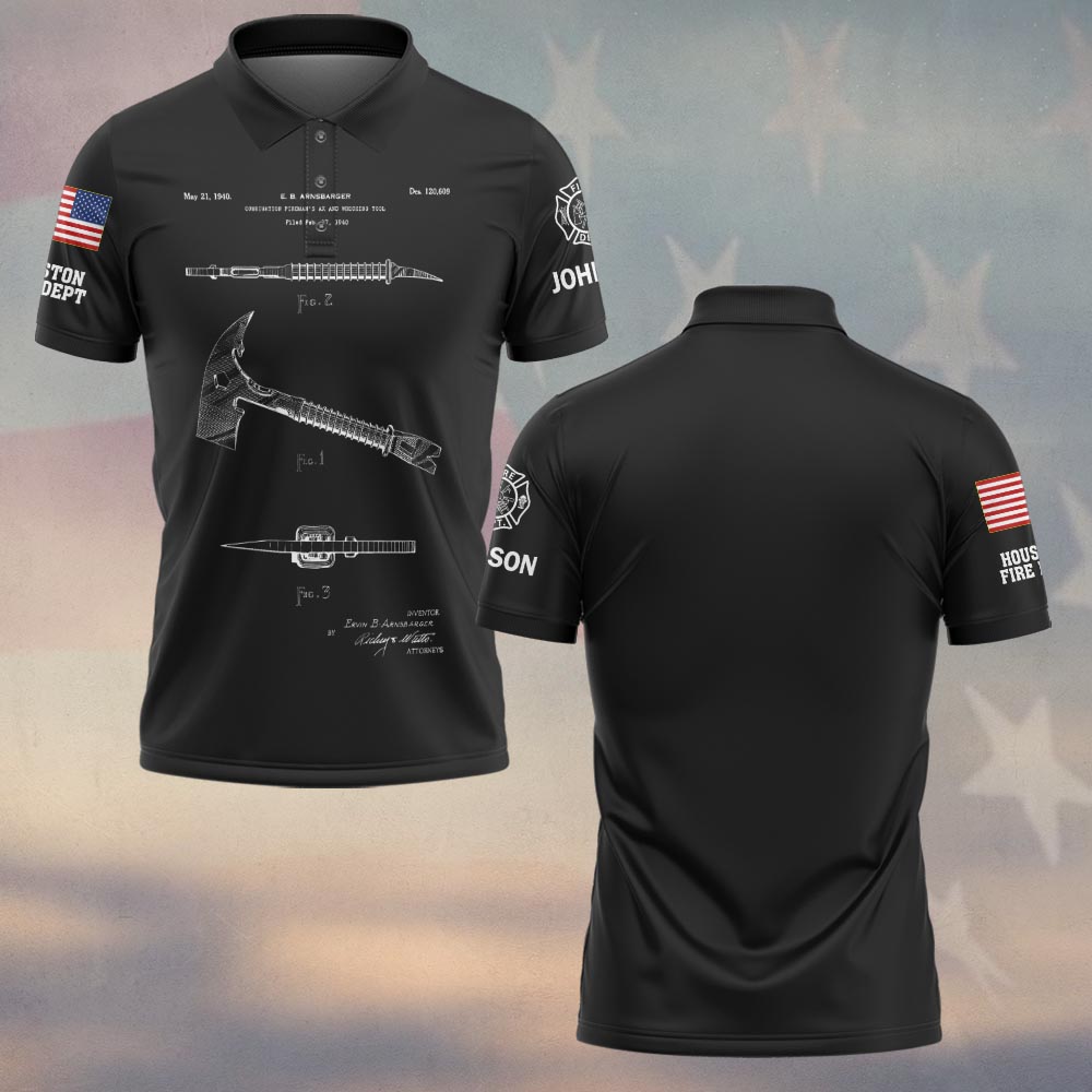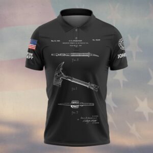 Custom Name & Fire Department Hook & Axe Blueprint Firefighter #DQH0422 – Polo