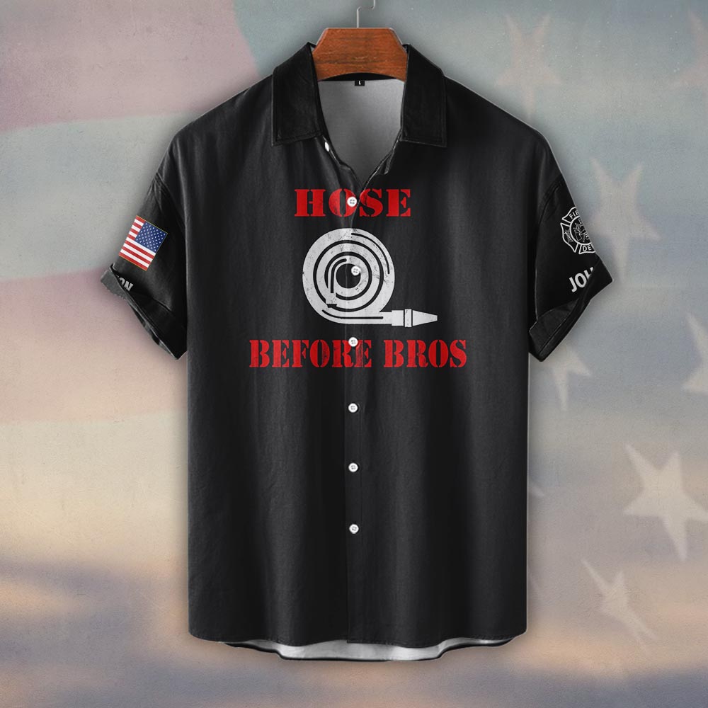 Custom Name & Fire Department Hose Before Bros Firefighter #DQH0442 – Short Sleeve Button Shirt