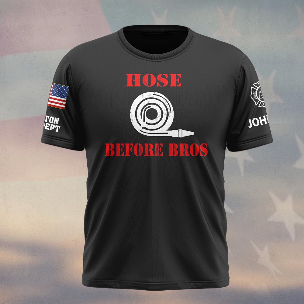 Custom Name & Fire Department Hose Before Bros Firefighter #DQH0442 – T-shirt