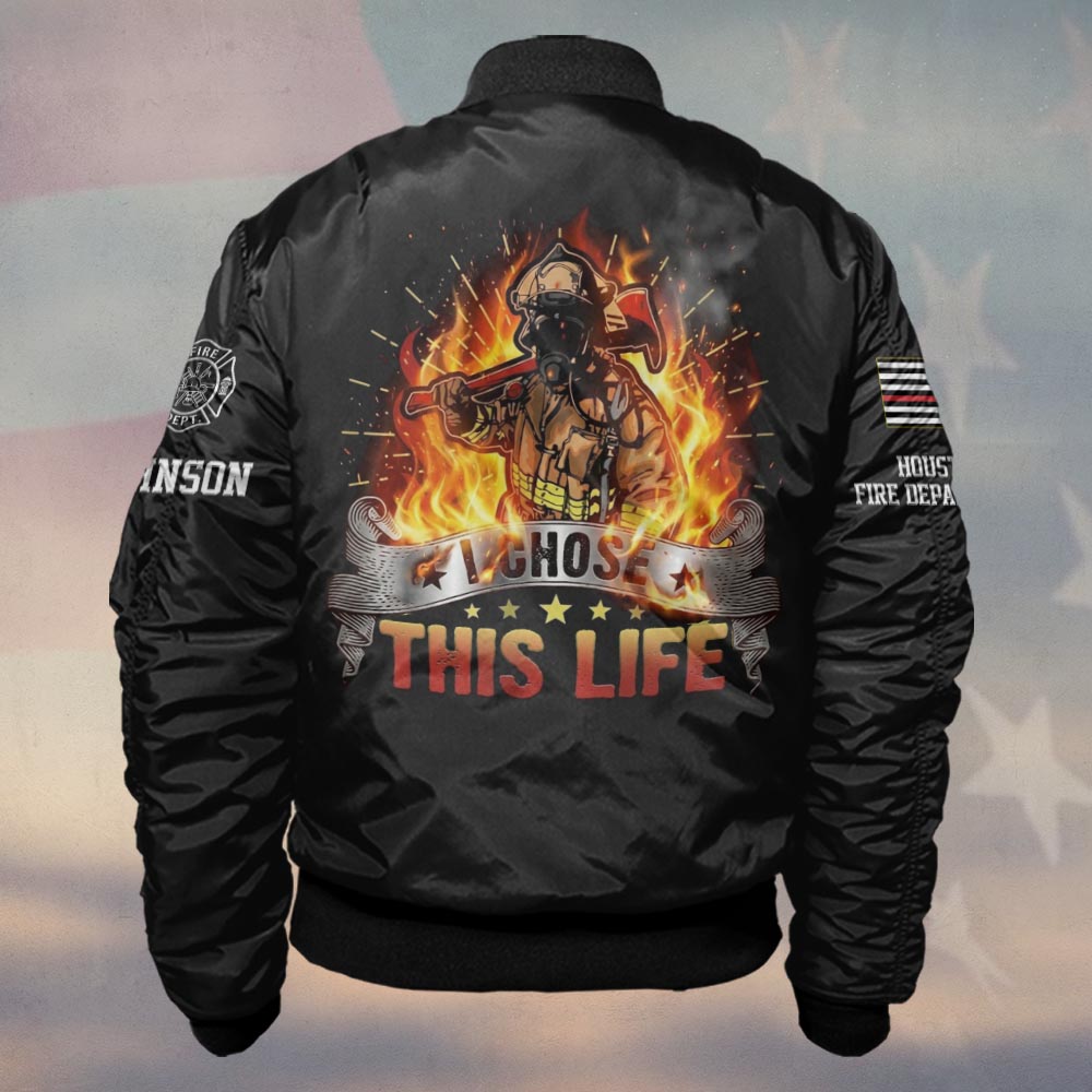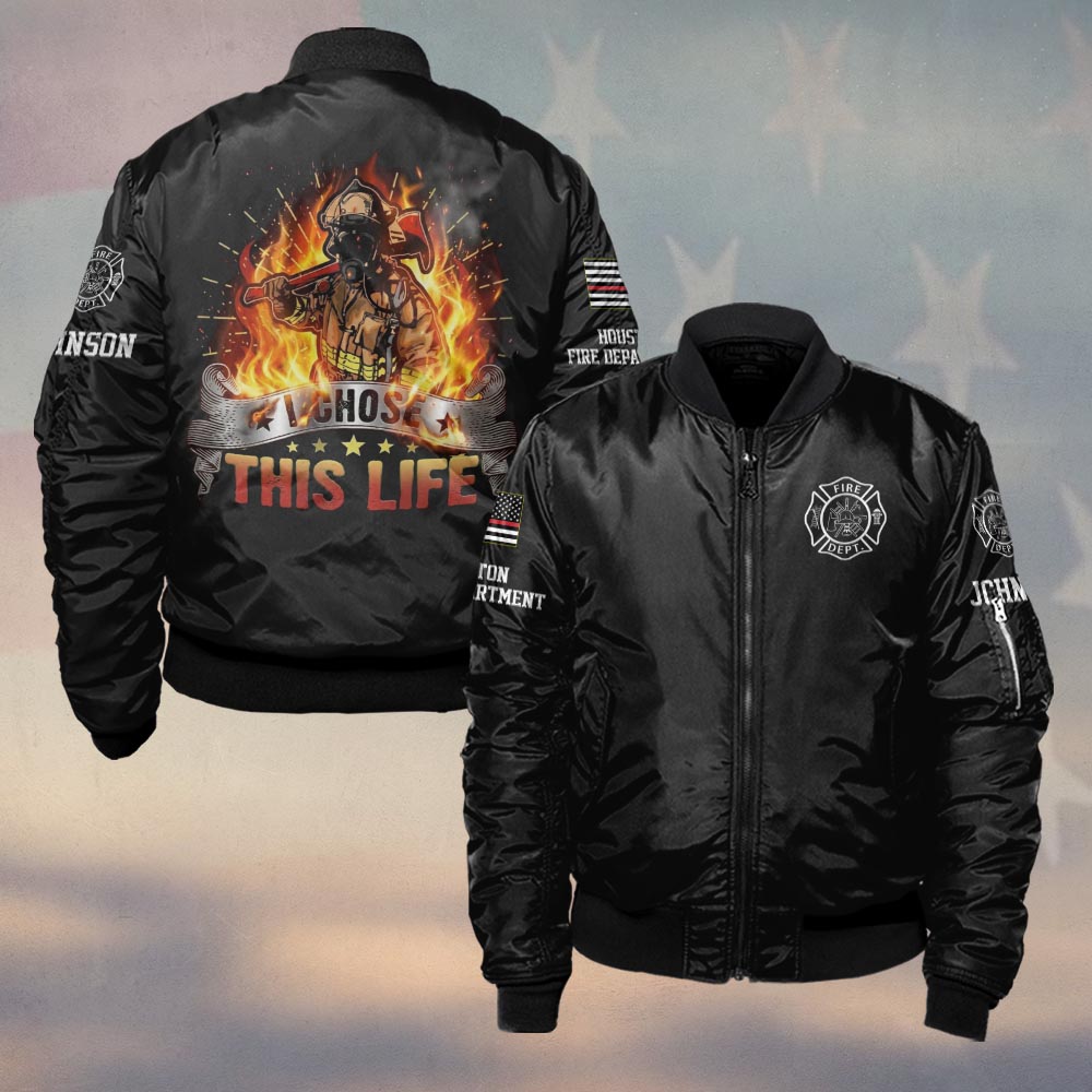 Custom Name & Fire Department I Chose This Life – Born to Face the Flames #DQH0370 – Bomber Jacket