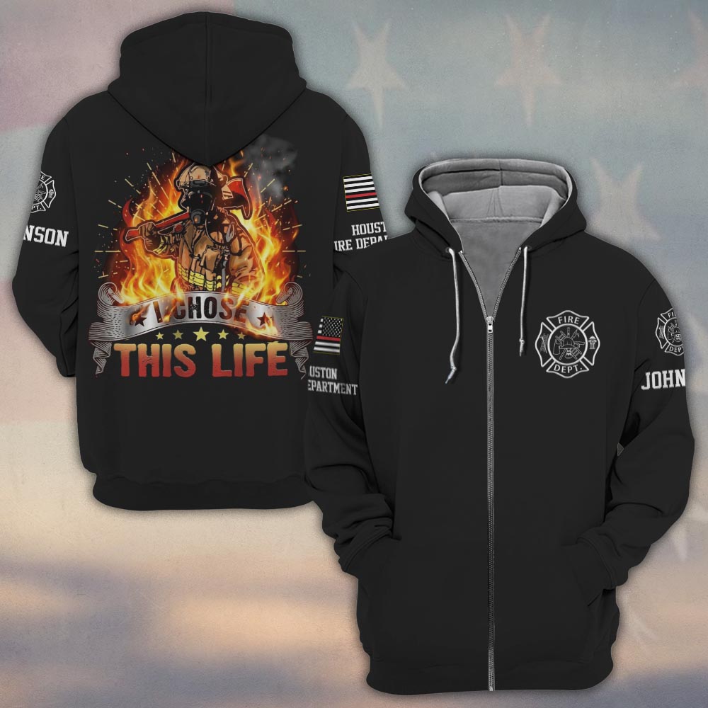 Custom Name & Fire Department I Chose This Life – Born to Face the Flames #DQH0370 – Zip Hoodie