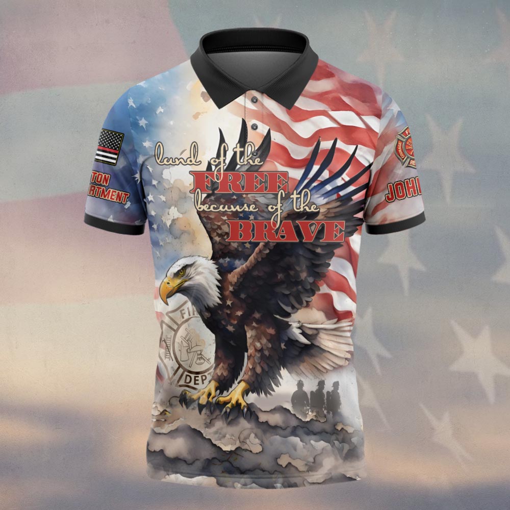 Custom Name & Fire Department Land Of The Brave Firefighter #DQH0354 – Polo