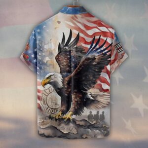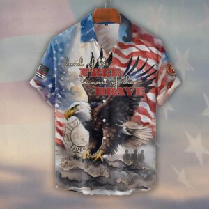 Custom Name & Fire Department Land Of The Brave Firefighter #DQH0354 – Short Sleeve Button Shirt