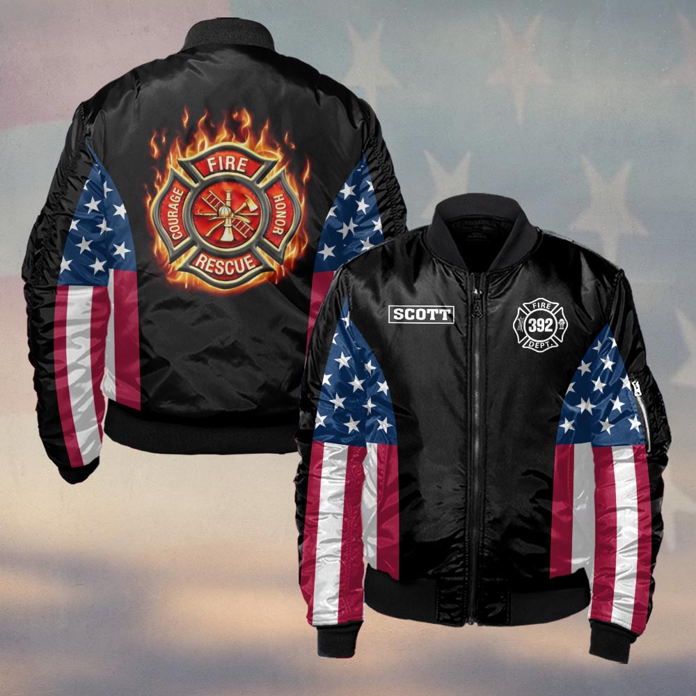 Custom Name & Fire Department & Number Honor Courage Sacrifice American Edition #DQH0263 – Bomber Jacket